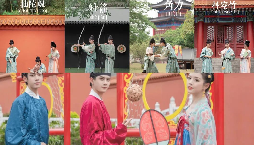 街区现场设置古风游戏互动区,项目包括趣味投壶、射箭、捶丸、空竹、木射等,游客到访可免费参与!