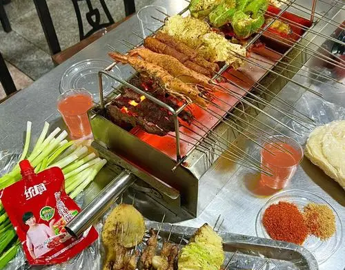 一比一复刻淄博烧烤全套配置,一桌一个小火炉、小饼、小葱、沾料、蒜蓉酱一个都不能少,让你在家门口就能大快朵颐淄博烧烤。