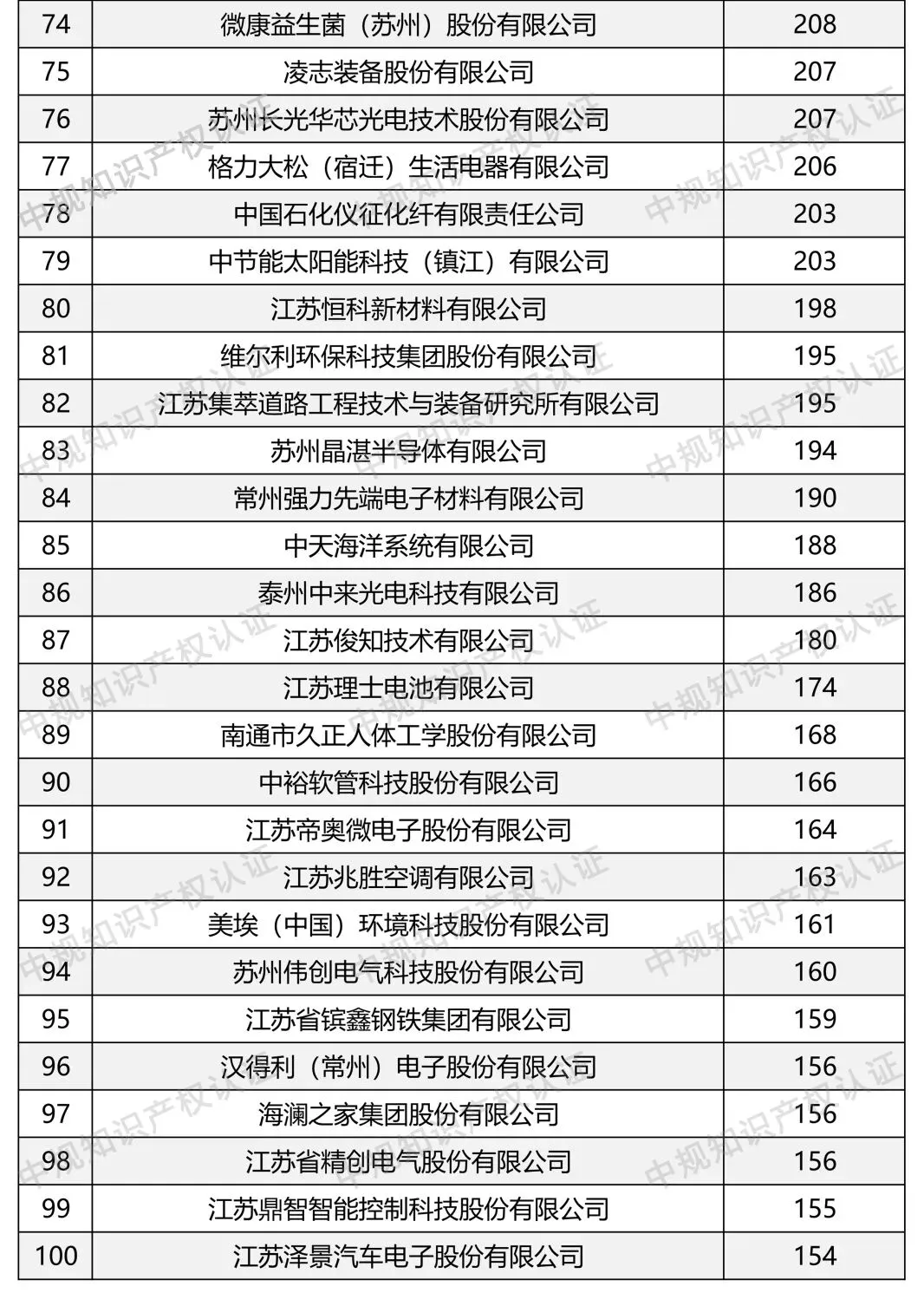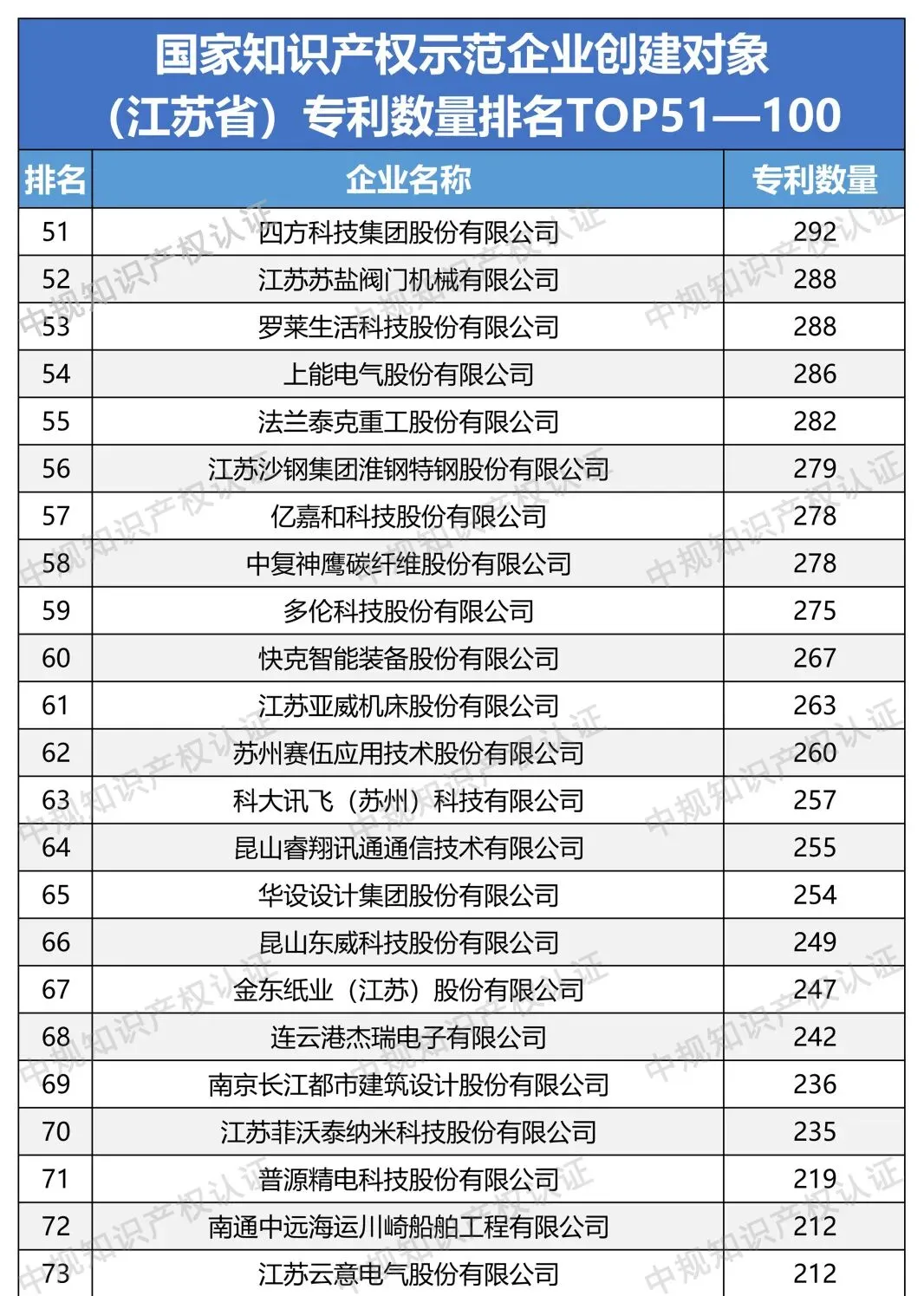 行业榜单 | 国家知识产权示范企业创建对象(江苏省)专利数量排名TOP1—50