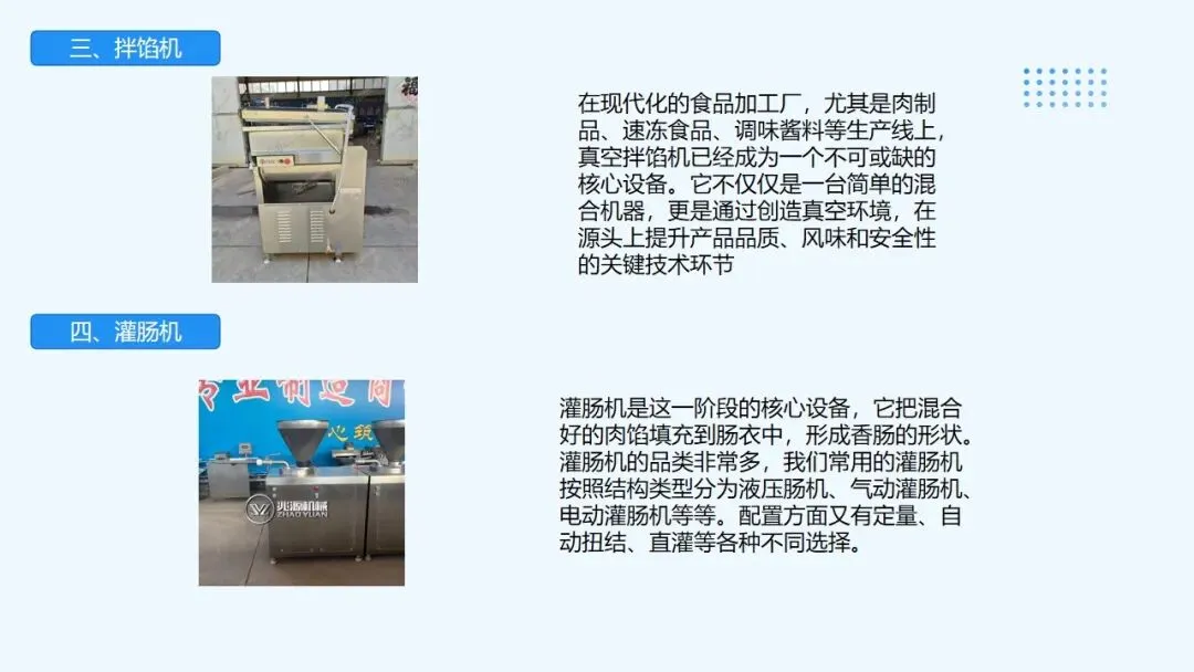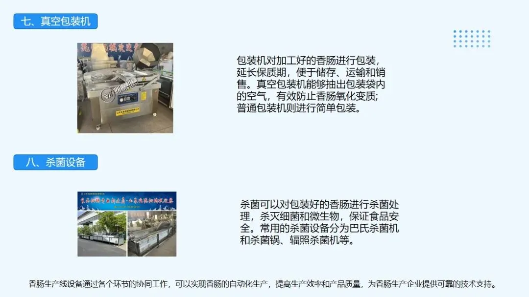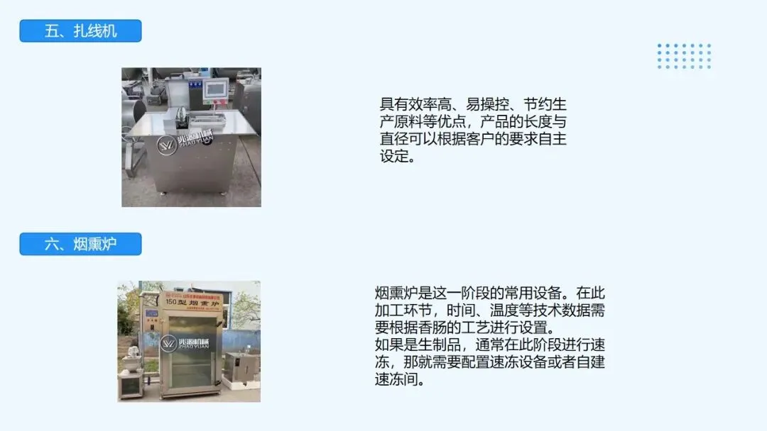 全自动香肠加工全套设备,红肠生产线,烤肠烟熏上色炉主要是有炉体,控制箱,发烟室,三部分组成,炉体是进行烟熏上色蒸煮烘干的场所,上部有风扇,铜盘管,风扇的作用是在电机的带动将吸收上来的热气,烟雾进行扩散,达到均匀的效果.