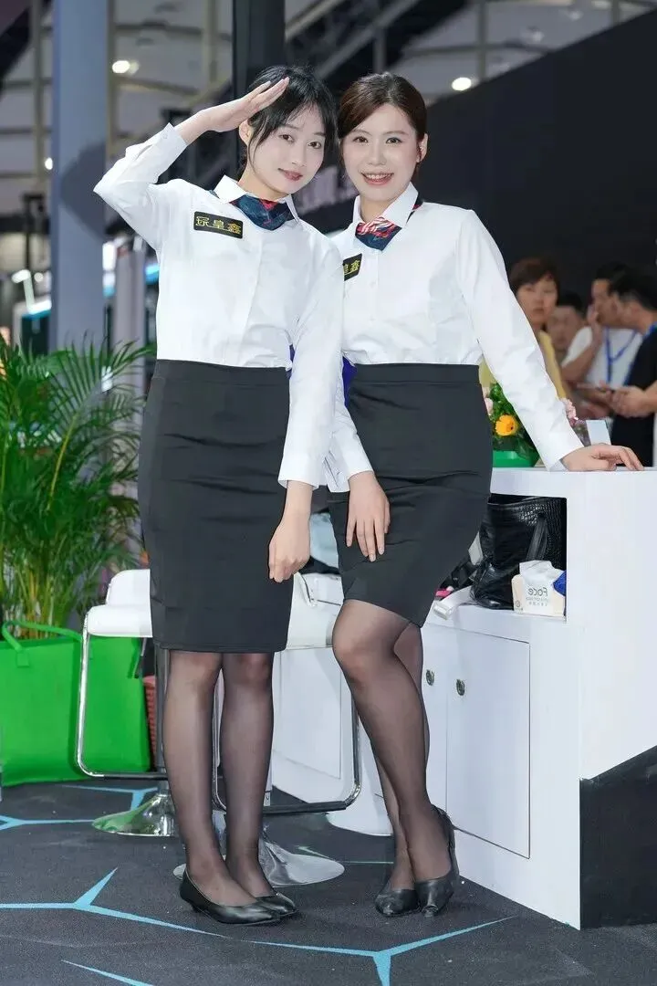 再来.瞅瞅这.对闺蜜组,白衬衫.加红蓝白丝巾,复.古感直.接拉满。左边.妹子敬个.礼,甜.中带飒;右边妹子.靠展台秀长.腿,小性感拿捏.得刚刚好.。两人都配黑色丝.袜和低跟皮.鞋,不会.太正式也不.会随便.,职场范儿十足.!