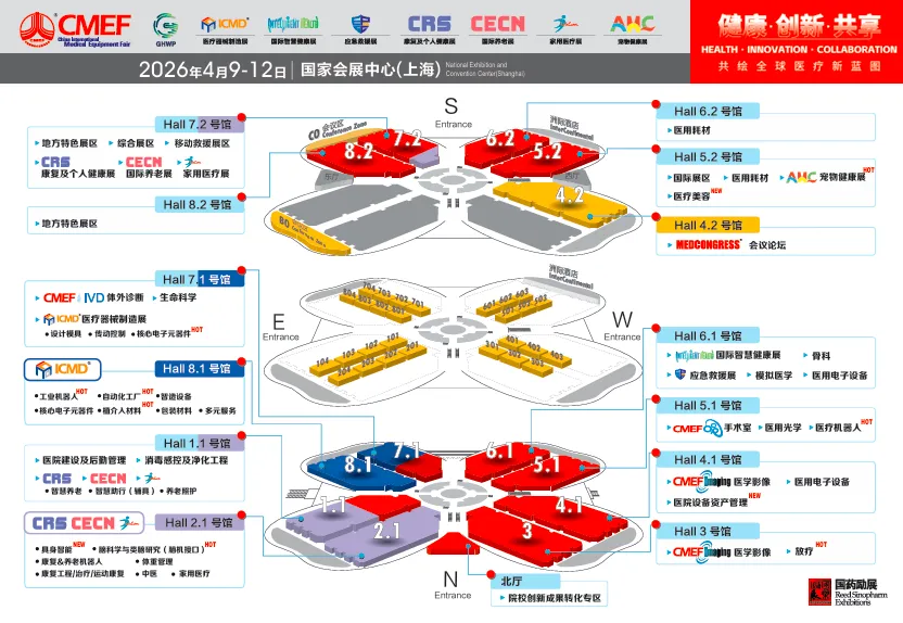 2026年4月9-12日,第93届中国国际医疗器械博览会(CMEF)、中国国际康复及个人健康博览会(CRS)、中国国际养老福祉及护理用品博览会(CECN)、中国国际家用医疗用品展览会(Life Care)等系列展会将在国家会展中心(上海)拉开帷幕,32万平方米大型展区、近5000家全球品牌、超30万专业观众齐聚,带来丰富的新玩法、新展区、新服务,与全球医疗及康复养老同仁共启行业新篇!