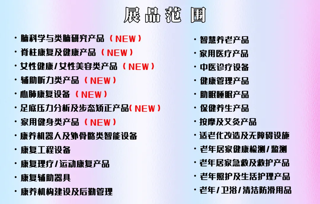 展会汇聚全球康复养老及个护健康领域全产业链展商、专业观众(其中70%以上为专业买家,分别来自各级医疗卫生机构、康复中心、养老院、行业经销商/代理商、康复养老/社会福利机构、药店诊所、电商微商、养生护理机构、投融资科研院所等领域)及行业专家学者及终端消费者定期到场参观采购、咨询下单,全面满足行业快速增长的需求,助推全产业链迈向发展新征程。