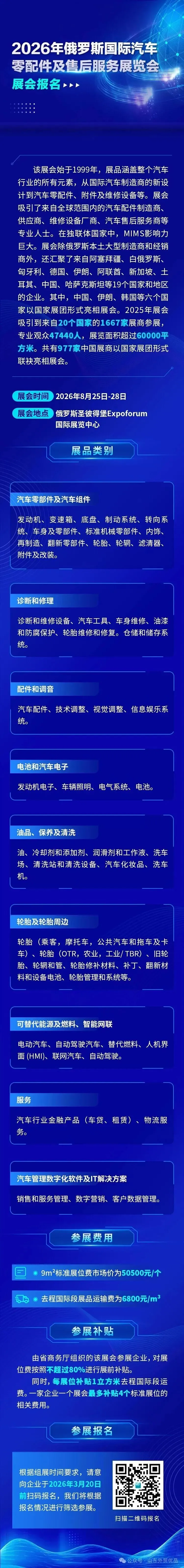 展会通知|2026年俄罗斯国际汽车零配件及售后服务展览会,3月20日前报名