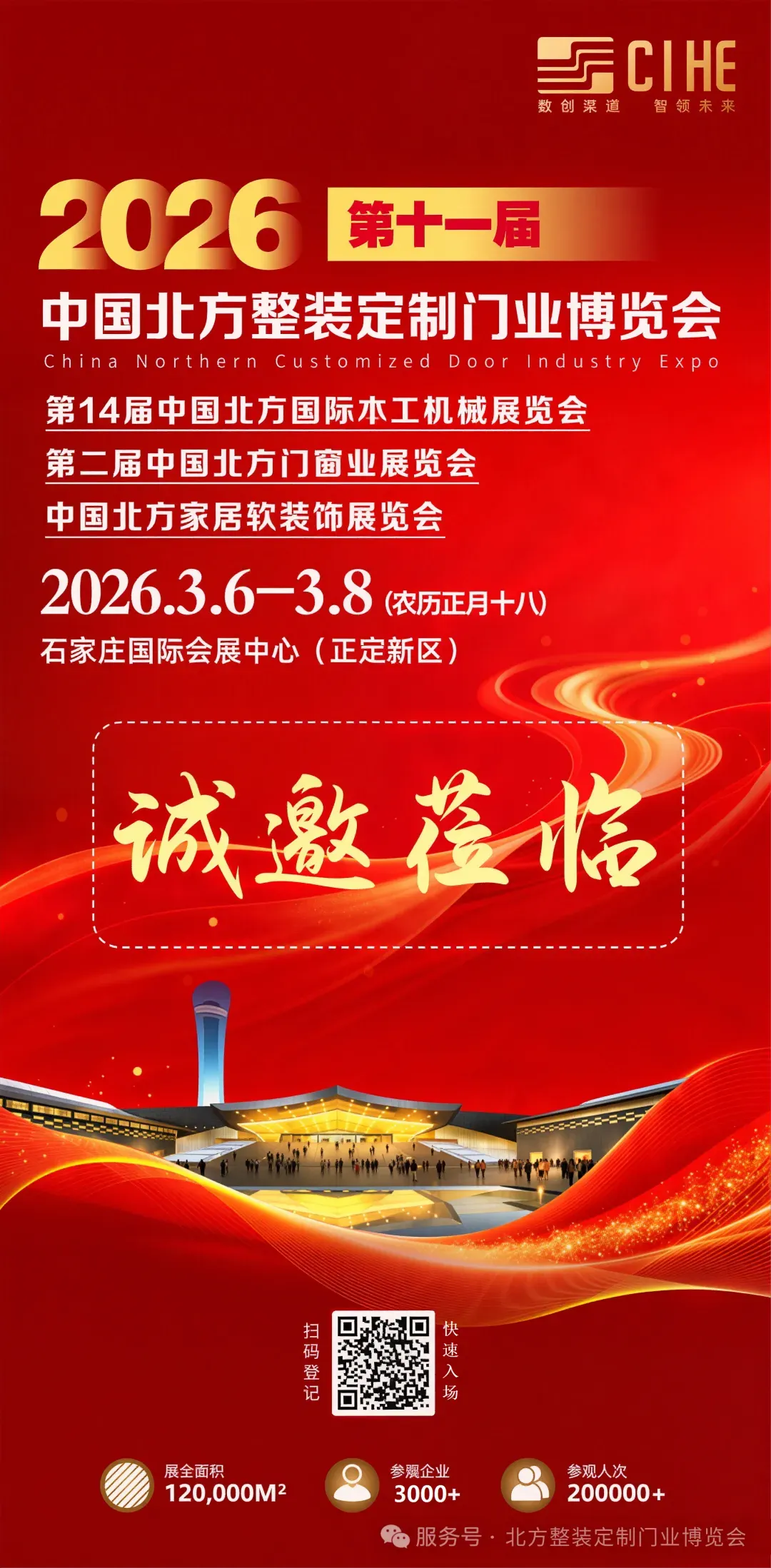 2026中国北方整装定制门业博览会将于2026年3月6日-8日(农历正月十八-正月二十)在石家庄国际会展中心(正定新区)隆重举行!