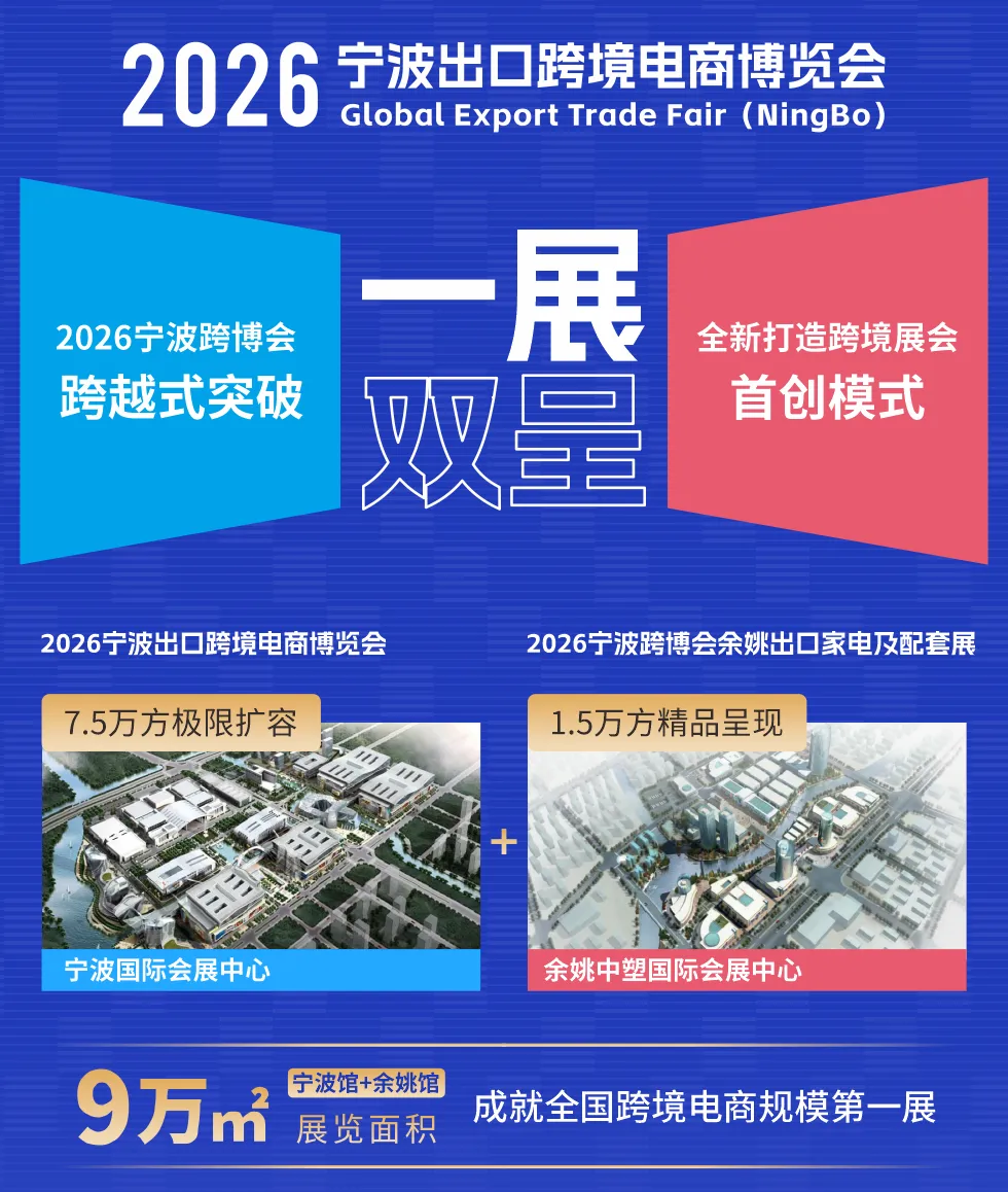 宁波跨博会是目前国内最具号召力的跨境高端专业展之一,也是国内唯一以“大家居”为核心品类的展会。2026年展会全新升级,以“一展双呈”的方式成就中国跨境电商规模第一展,也将打造跨境电商展会的一展两地“首创”。