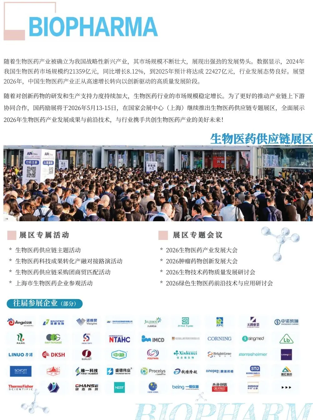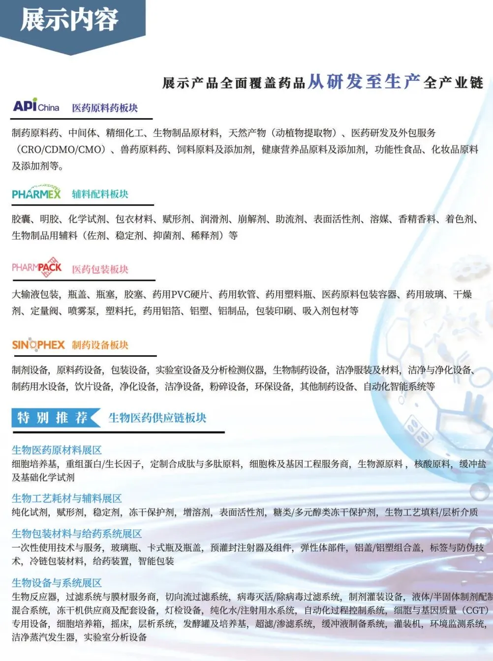 本届展会继续推出“生物医药供应链展区”和“医药研发供应链展区”,充分依托生物医药和研发创新在长三角核心腹地的产业优势,将上海及周边辐射区域内已形成的药品研发-临床-生产-应用的完整产业生态集中呈现。全面构成从药品源头创新到规模化生产的协同体系,以展会为契机,加强合作交流,凝聚行业智慧,共同助力中国医药产业高质量发展。