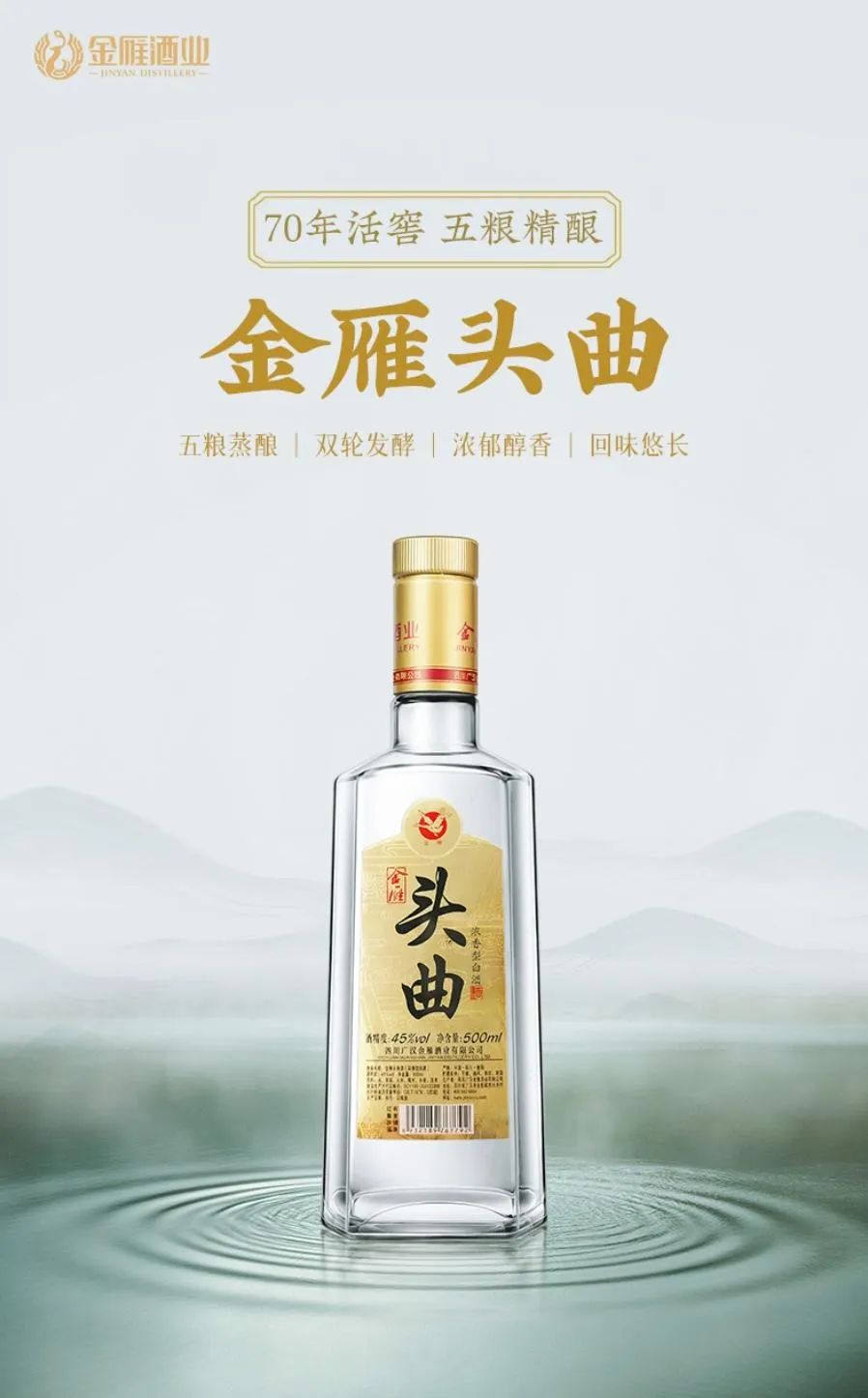 1988年,其注册商标“金香玉牌”38°特曲在全国优质名酒评比中排名第七。2005年,四川金宇鼎盛实业有限公司收购金雁酒厂。2008年,金雁酒业将老酒厂整体搬迁出城涅槃重生。金雁先后被评为广汉市首批“质量单位”、“德阳市知名商标”、“四川省名优酒”。“金雁牌”系列酒连年获得“中商部优质酒”、“部省双优产品”等称号,金雁特曲被列入《省级(四川)名优产品推广应用目录》。金雁酒以五粮为生产原料,采用浓香酒生产工艺,经陈年老窖发酵,具有“窖香幽雅、陈香舒适、醇厚绵甜、香味协调、回味爽净、”的独特风格。现在已有“金雁牌飞翔酒” “金雁腾飞酒”“金雁樽煌酒”“金雁明珠酒”“金雁汉青酒”“金雁特曲酒”为代表的不同品种、不同规格的系列产品。没有喝过金雁的朋友可以试试,体验一下它的“陈香舒适”的风味特点。免责声明: