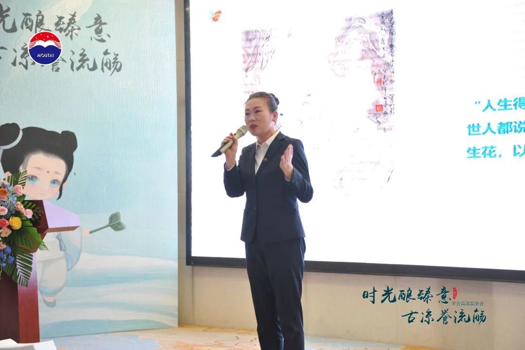 活动伊始,武威市鸿都酒业有限责任公司总经理满莉鸿女士致辞,她表示:甘美之的茅台传承千年、跨越古今,每瓶茅台酒中都蕴藏着其独具一格的酿造文化、崇本守道的工艺传承与极致卓越的匠心底色,彰显了天人共酿、美自天成的中华酿酒文明之美。今后,公司将继续遵循茅台“大集团一盘棋,产业链一条心”的发展战略,以“美”为核心,认真走好“五线发展道路”,增强茅台在当地的品牌认同感。