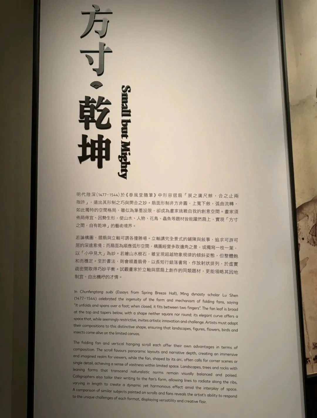 本次展览从静观楼藏品中遴选150把成扇,结合艺术馆所藏中国书画,引领观众走进「方寸之间,自有乾坤」的艺术意境,领略中国文人执扇临风的雅意。