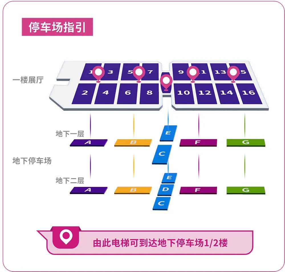 导航搜索:关键字"深圳国际会展中心1号门或P1-P5地下停车场入口”,可直接到达目的地,进入观众停车区,并根据现场指引入馆参观。