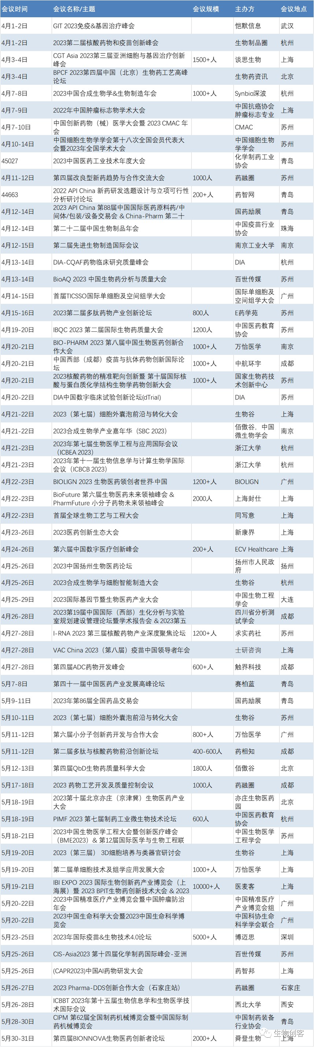 由于在1月份发布“元旦福利!2023年生物&制药行业展会会议大汇总”时,仍有部分主办方未公布2023年计划,未能全部整理,但鉴于1月份也有一些会议安排,因此笔者先分享了一版。当之前版本中,Q3和Q4季度的展会会议计划较少。随着春节后更多主办方更新会议安排,根据的会议安排如约奉送,请诸位按需取用。如需可编辑版本,请分享至朋友圈24小时后私信联系小编!