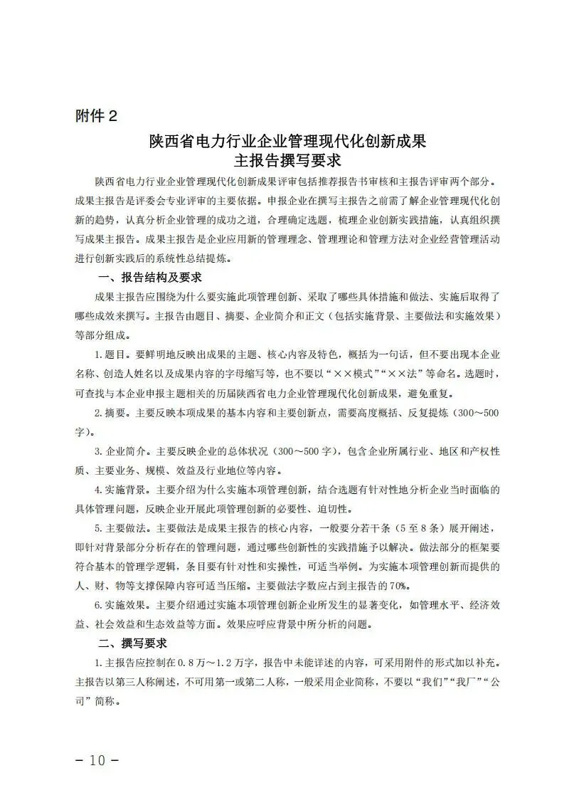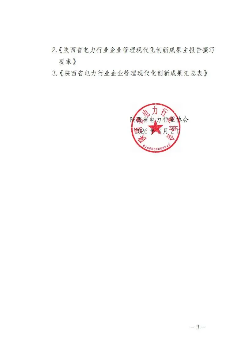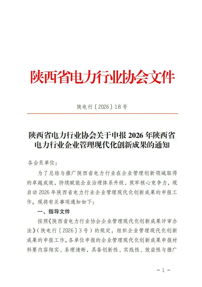 陕西省电力行业协会关于申报2026年陕西省电力行业企业管理现代化创新成果的通知