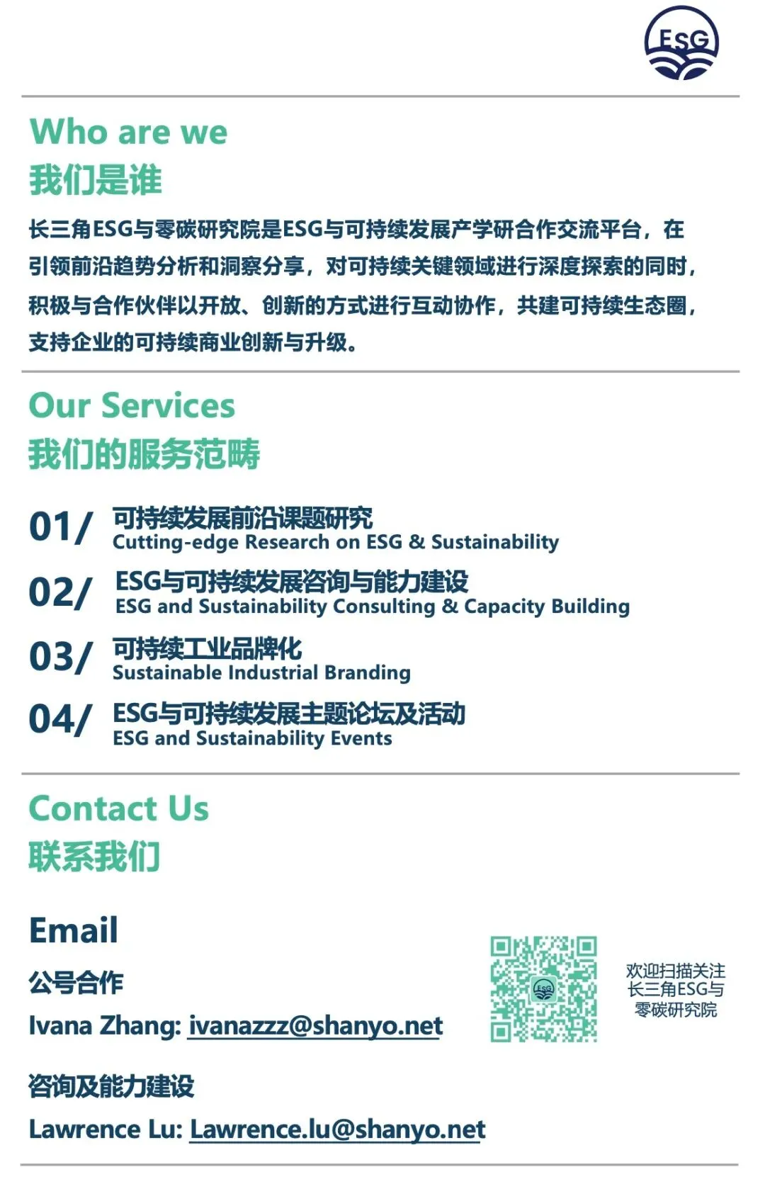 自 2021 年起,符翀女士创立了长三角ESG与零碳研究院,构建了集前沿研究、专业培训与跨界交流于一体的产学研合作平台。研究院不仅为企业提供最新的 ESG 趋势分析与实操指导,还通过开放创新的合作模式,推动企业可持续商业模式的探索与升级,助力行业生态的系统性发展。