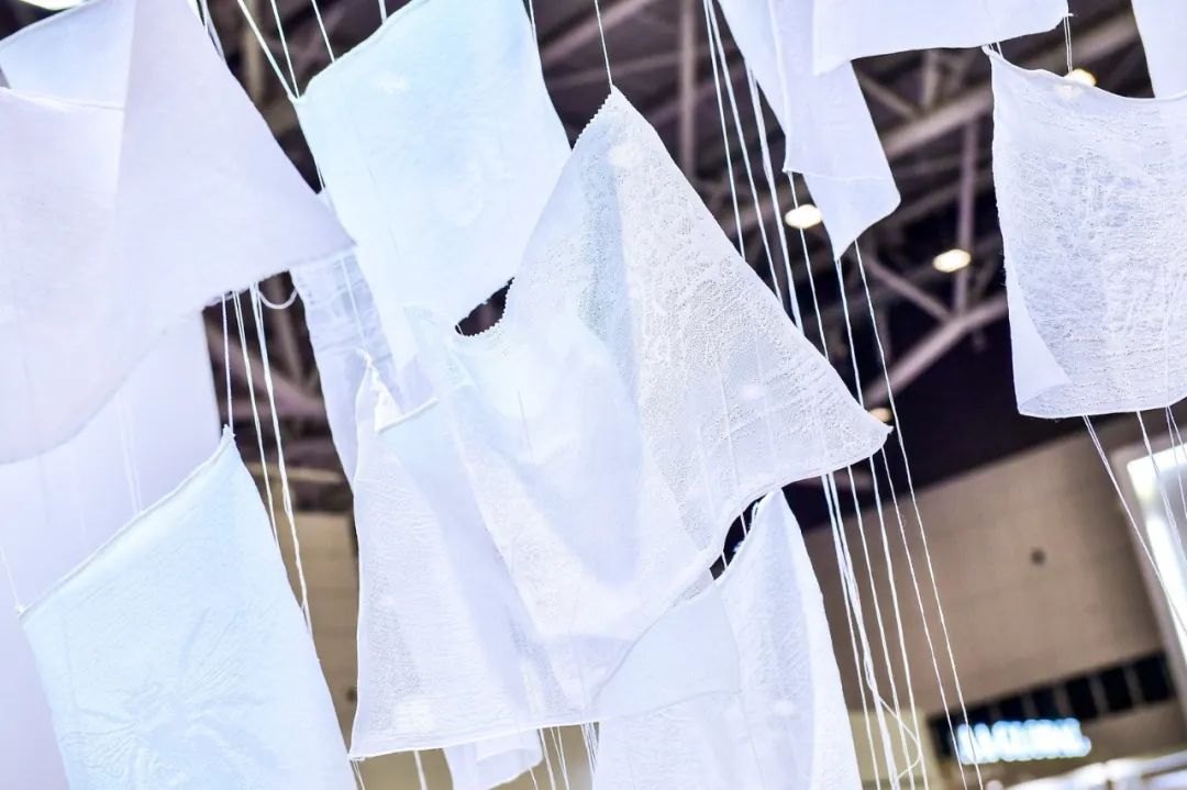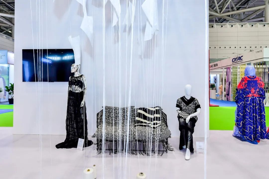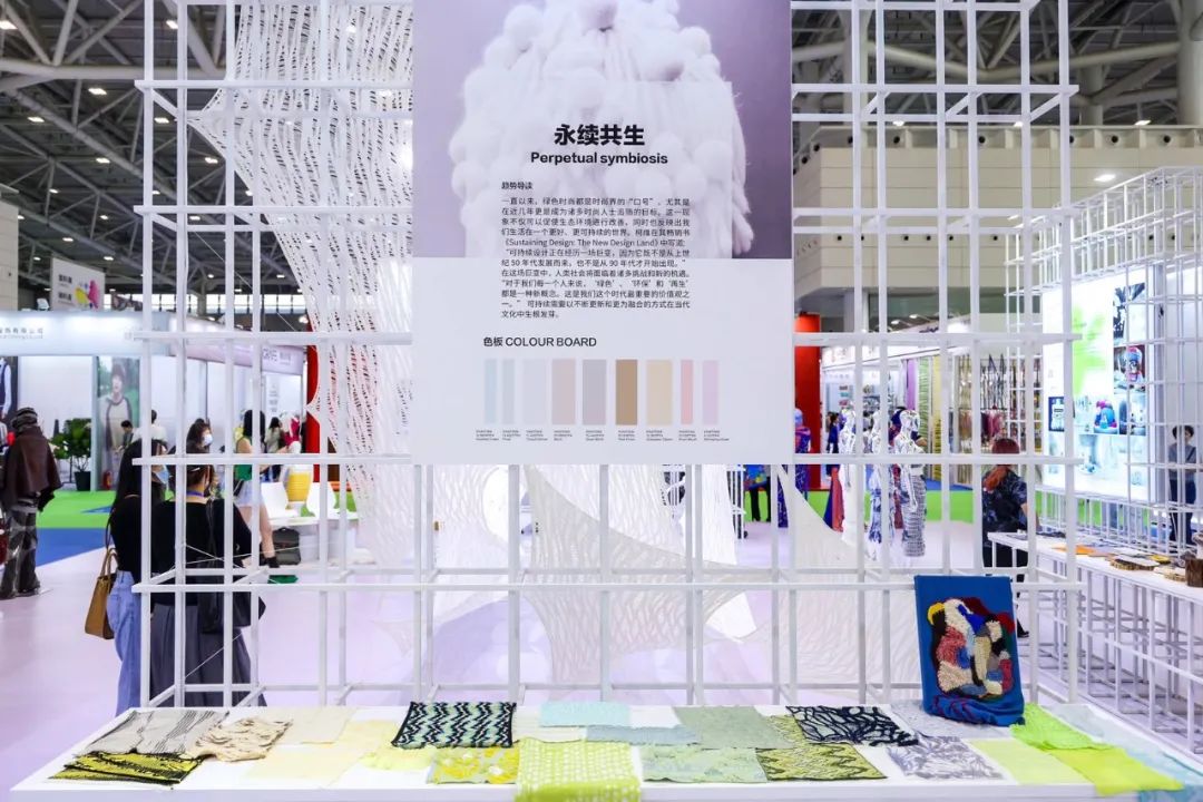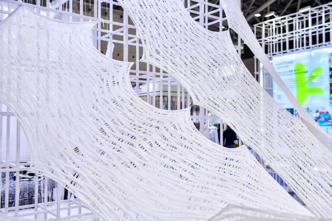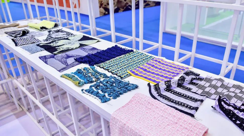 色彩与花型灵动交织,趋势区空灵未来的气质吸引了大批设计师与产品开发人员流连观赏,除了织片呈现,现场还有针织成衣、艺术装置、3D样衣橱窗、家居饰品、汽车内饰及跨界作品延展交融,共同阐述当代针织艺术的无边创意。