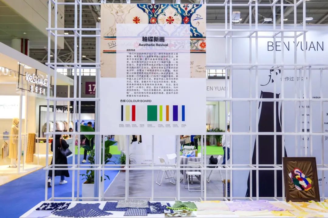 FS24/25春夏针织流行趋势区以“像素织外”为核心主题,涵盖“智能秘钥、永续共生、都市减法、釉碟新画”四大细分趋势,与近百家针织领域头部企业、设计师、院校人才联动创作的近200款原创织片也在此一一呈现,带来无限灵感启发与创作视角。