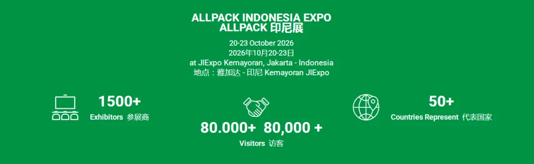 印尼是中国包装机械出口的核心增长市场,ALLPACK INDONESIA 2026 是企业展示实力、抢占订单、建立东南亚渠道的最佳窗口。