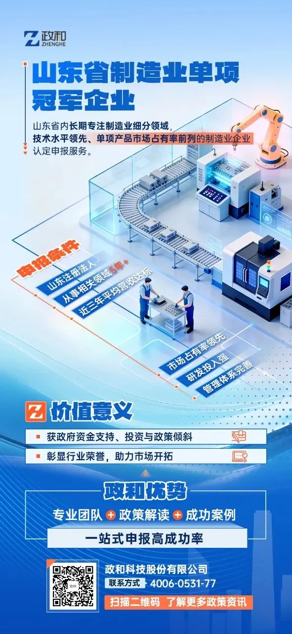 山东省制造业单项冠军企业 彰显行业荣誉