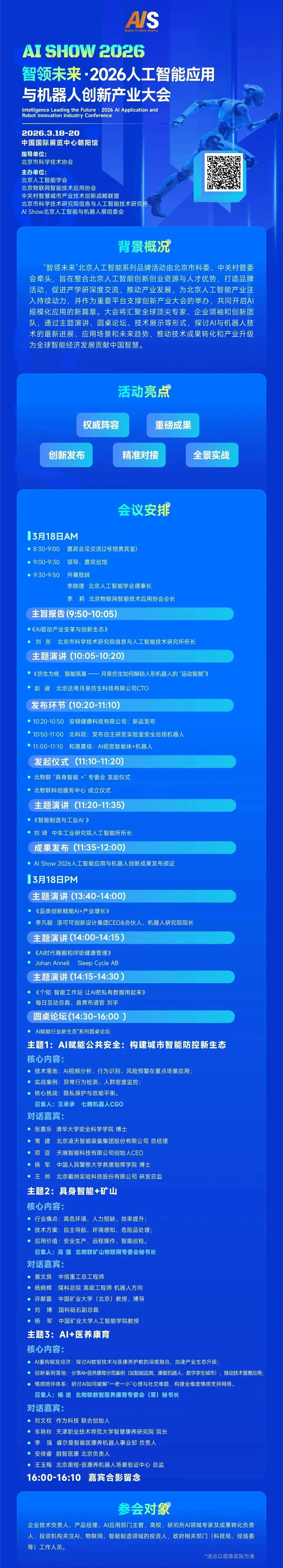 2026人工智能应用与机器人创新产业大会3.18号会议日程:9:30正式开始,北京·中国国际展览中心朝阳馆2号馆