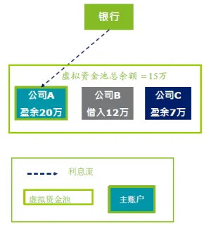 −在资金池成员账户之间没有任何实际的余额转移,银行通过系统划扫参与成员个人账户的各种余额,并根据净余额支付或收取利息,并根据资金池协议中确定的公式,指定的主账户或所有参与账户。