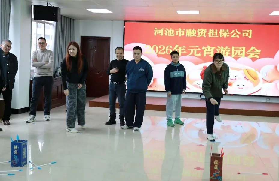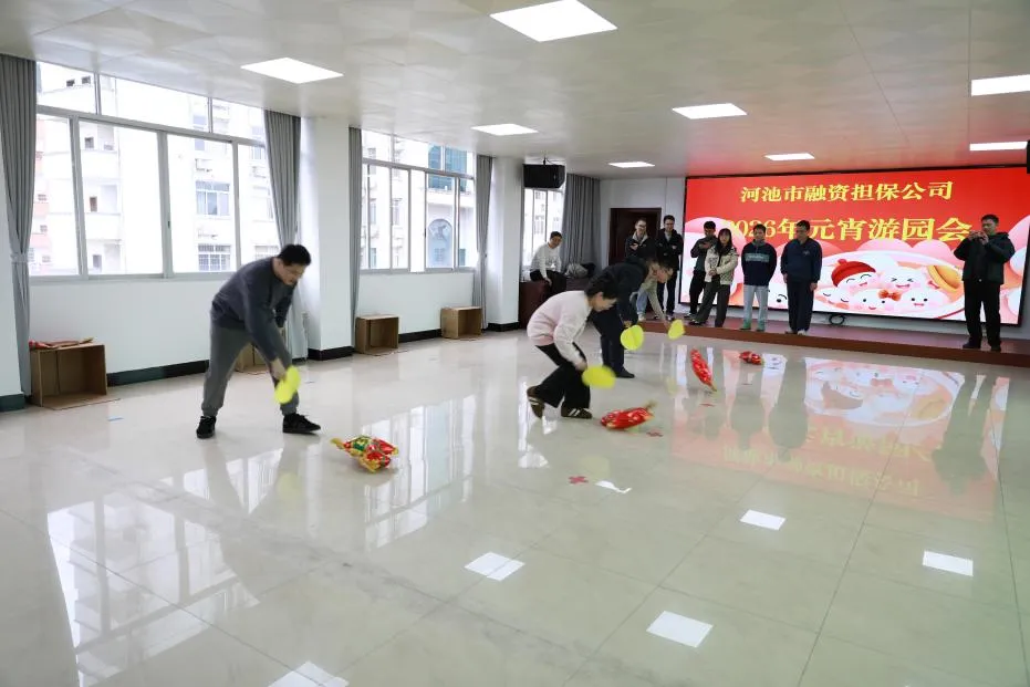 在2026年元宵佳节到来之际,为弘扬传统文化,活跃工作氛围,强化队伍凝聚力,河池市融资担保公司工会组织全体干部职工举办了一场主题为“策马踏春来,齐聚庆元宵”的元宵游园会。公司董事长陆元举作活动致辞,希望大家在协作中增进默契,在竞技中激发斗志,在欢笑中拉近距离,以更加饱满的热情和更加昂扬的斗志,策马扬鞭,奔赴新程,助力公司发展再创佳绩。