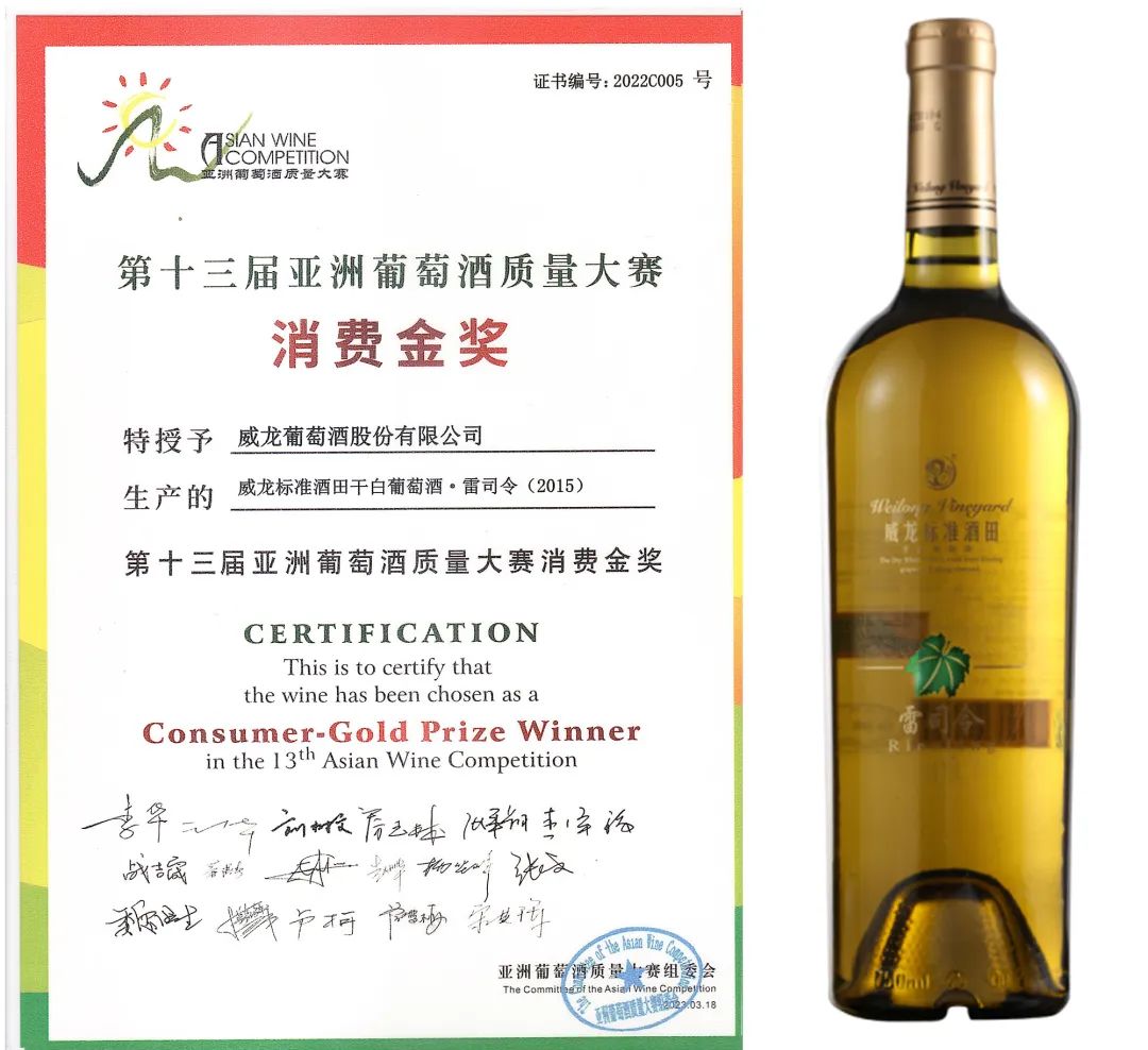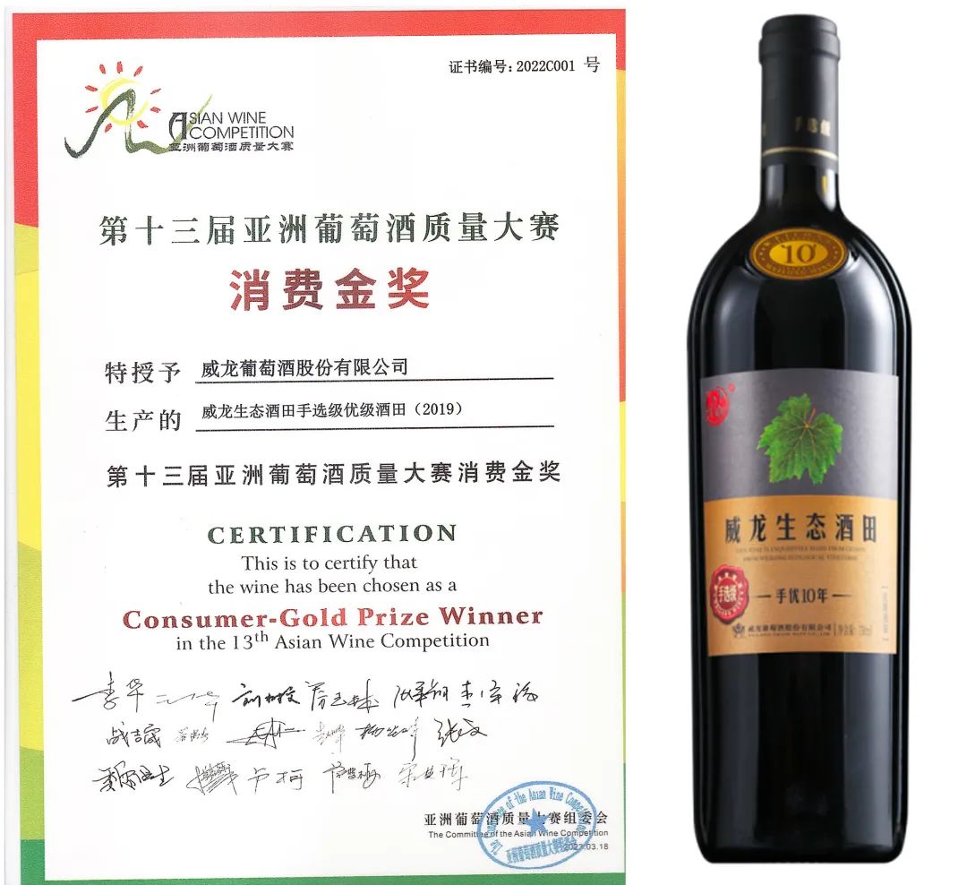 威龙葡萄酒在此次赛事中荣获1项金奖,2项消费金奖,9项银奖。