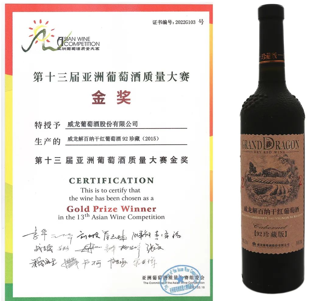 葡萄酒是匠心与耐心的杰作,威龙葡萄酒在众多参赛产品中脱颖而出,赢得大赛评委的一致好评,是对威龙品质的最大肯定。
