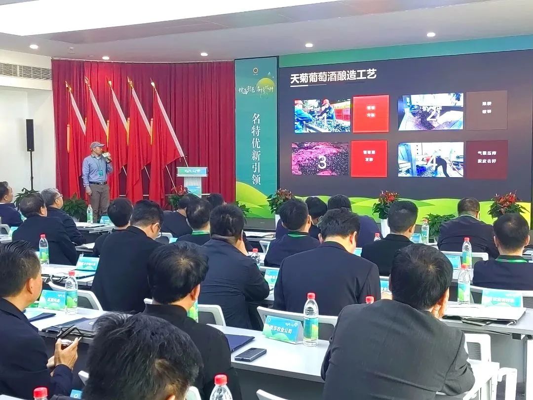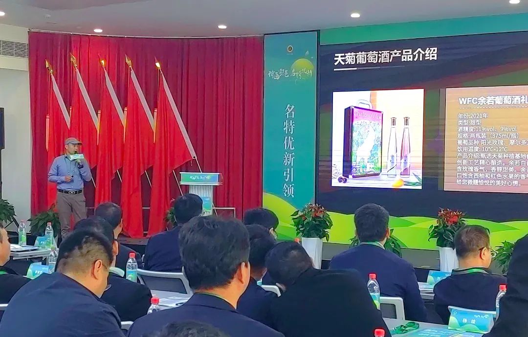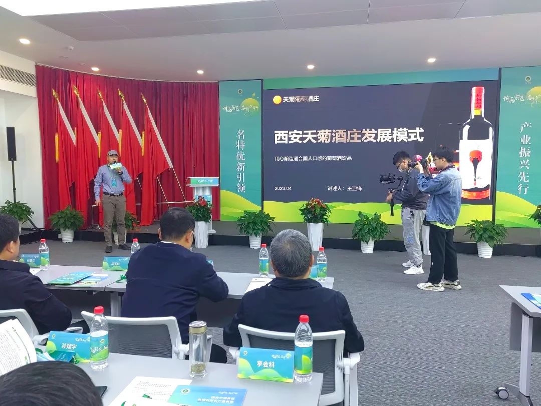 本次活动以“名特优新引领 产业振兴先行”为主题,大会以展示推介、产业创新发展研讨、产销对接为一体,开展名特优新农产品推介、产品展示等,着力推动农业产业高质量发展及农产品牌化进程。本次活动现场西安天菊酒庄负责人王卫锋就“天菊葡萄酒庄发展模式”做了现场陈述!