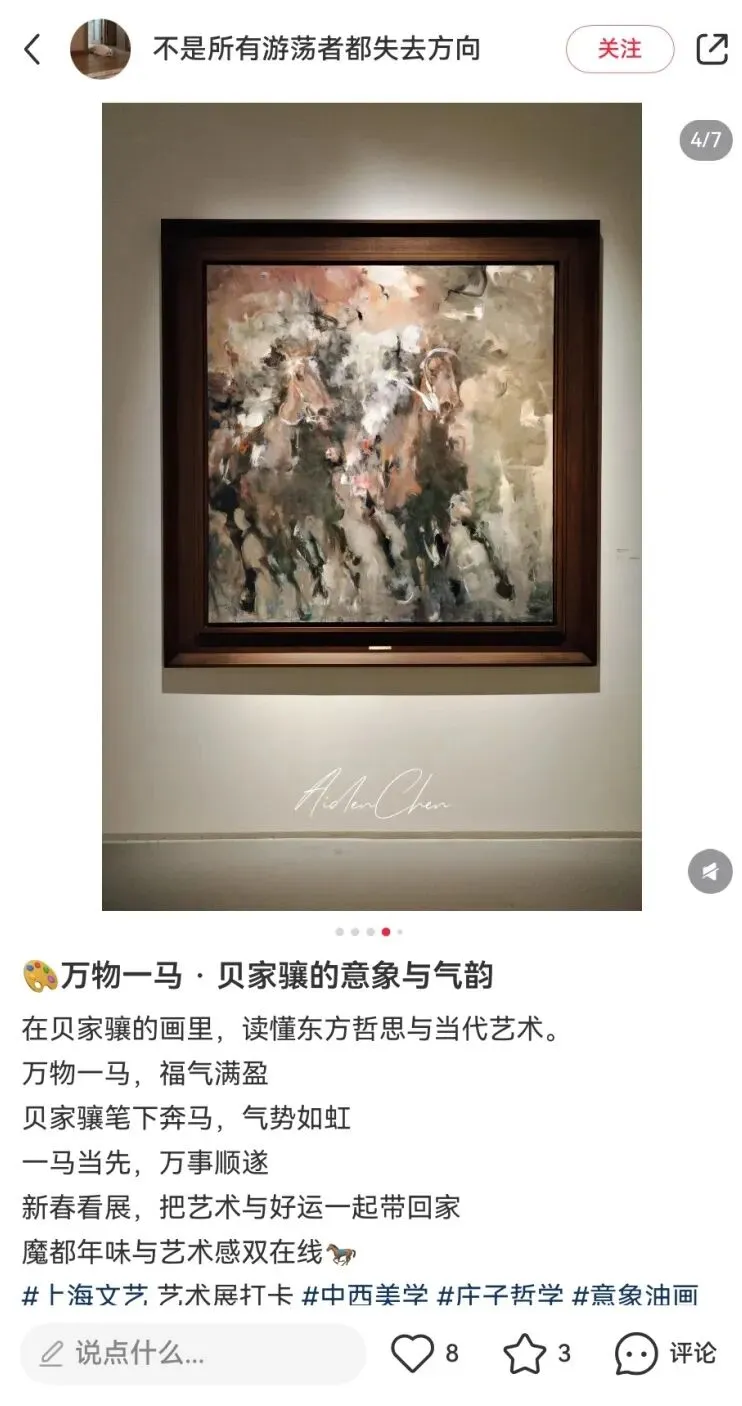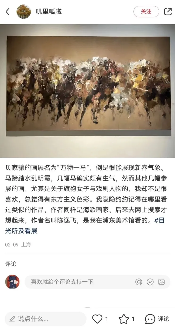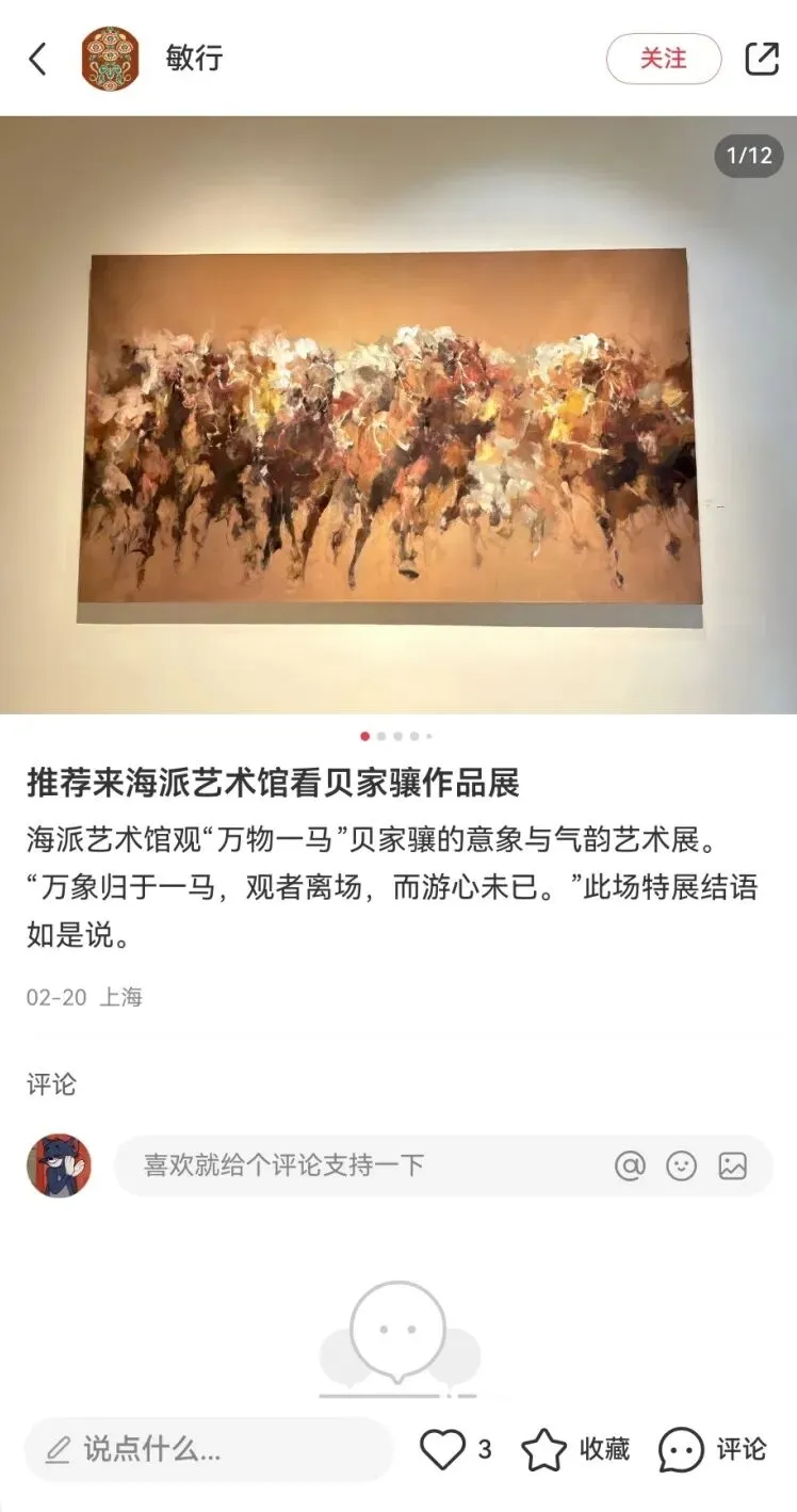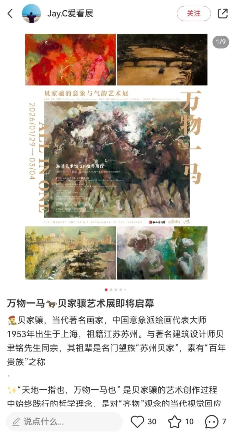 “万物一马”贝家骧的意象与气韵艺术展,展览以庄子“天地一指,万物一马”的哲学为精神线索,汇聚了90件贝家骧跨越四十余年的艺术创作,透过奔马、都市、戏曲、花卉等多元题材,展开了一场融汇东西、贯穿古今的美学对话。