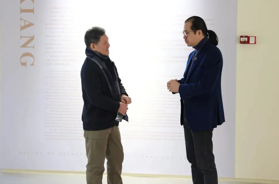 1月29日上午,海派艺术馆常务副馆长陈屹与本次展览艺术家贝家骧携手,用一场沉浸式直播导览带领观众共赴一场哲学与艺术的深度对话。