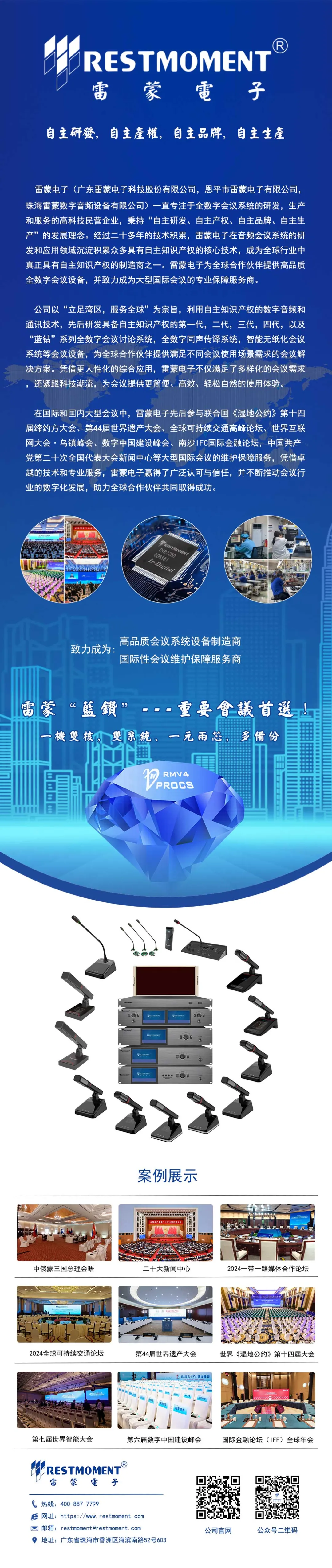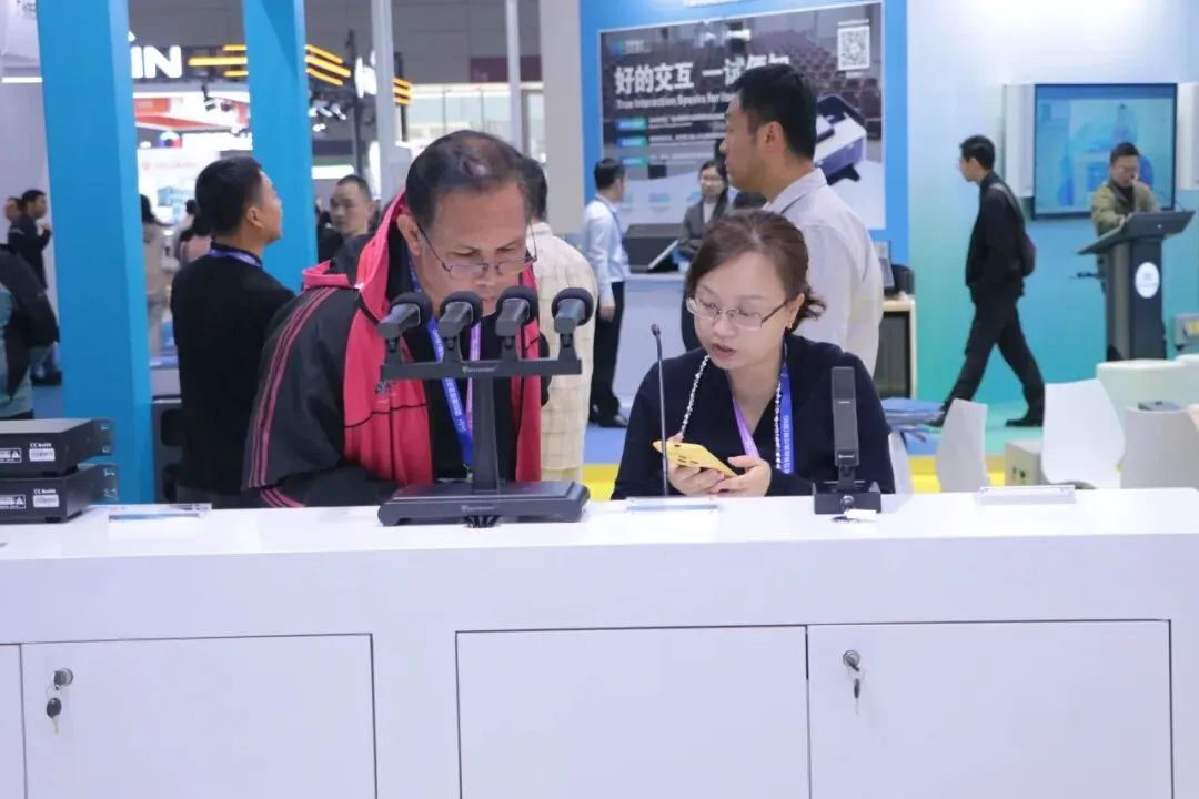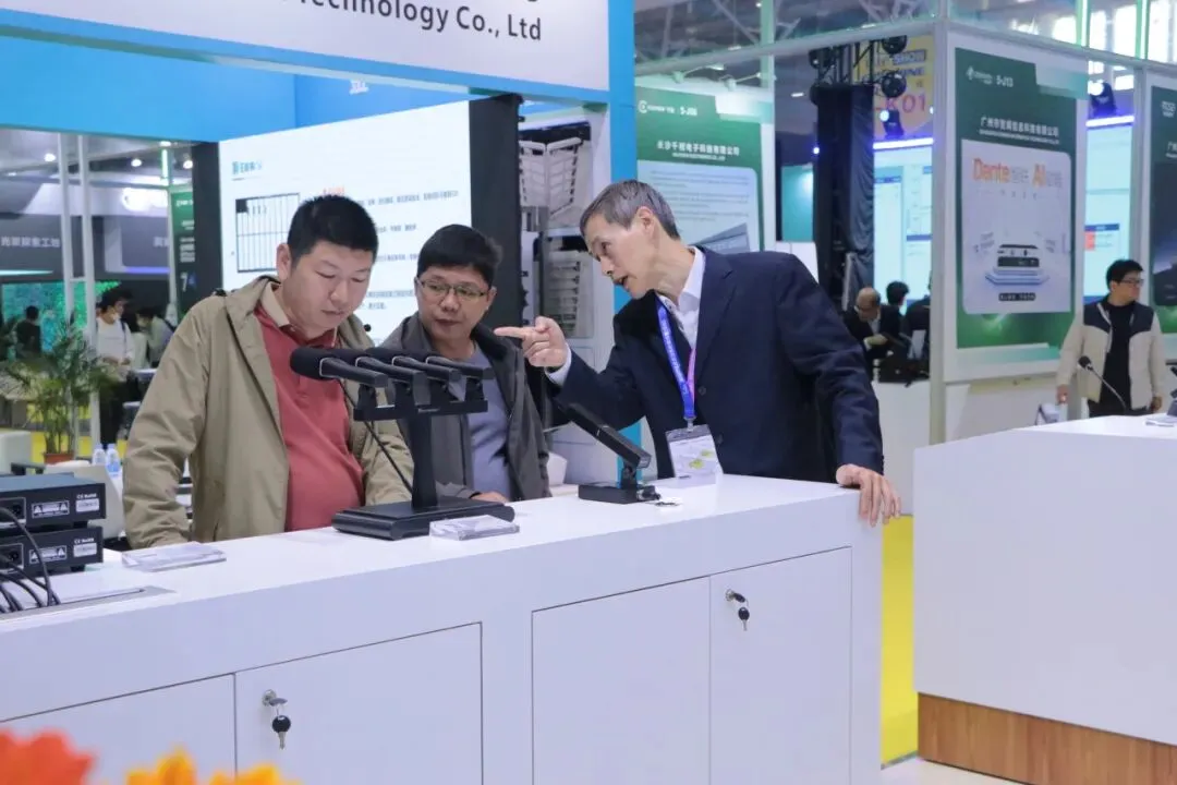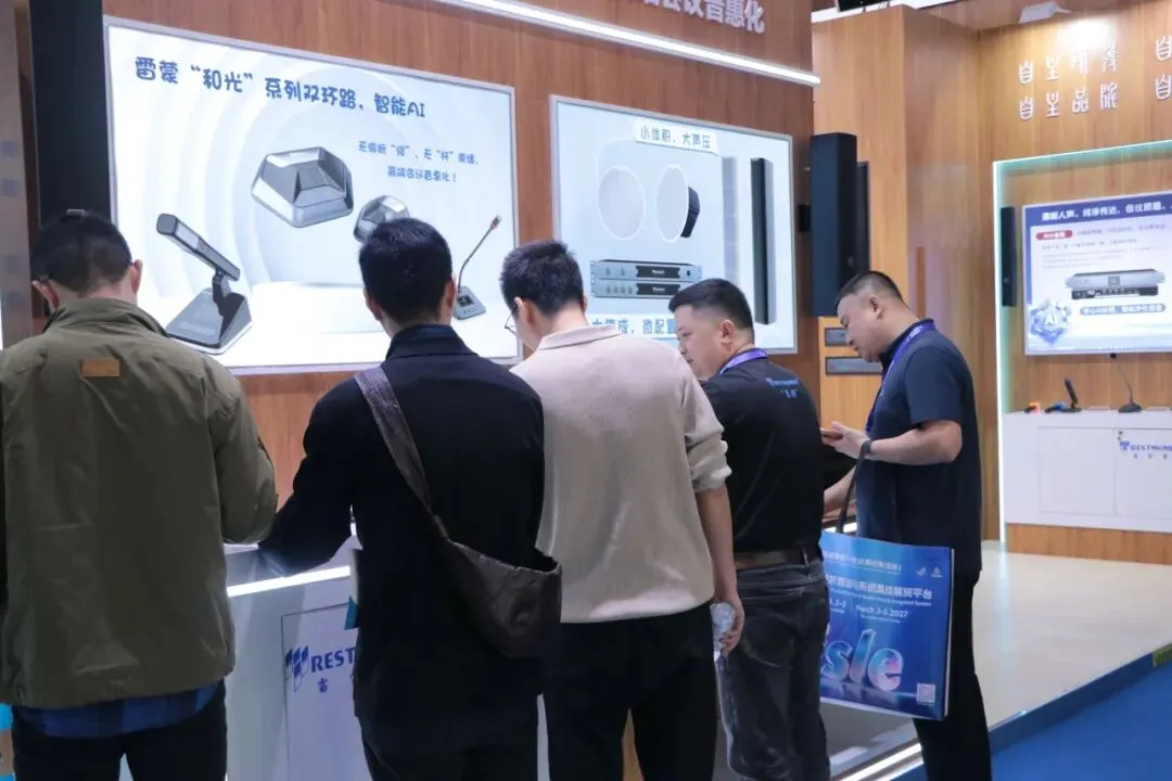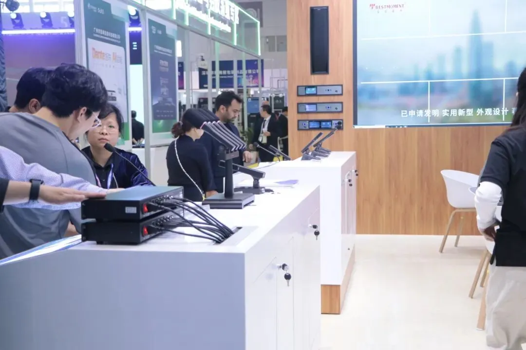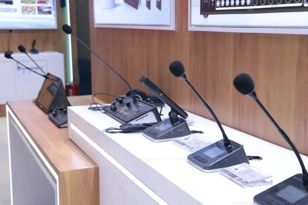 最新“和光”系列多模态AI智能会议系统,第四代全数字同声传译系统,U段无线音频解决方案,无纸化会议解决方案等多系列会议产品解决方案以及最新新品 三合一主机“ALL IN ONE”和“AI小金刚”处理器。