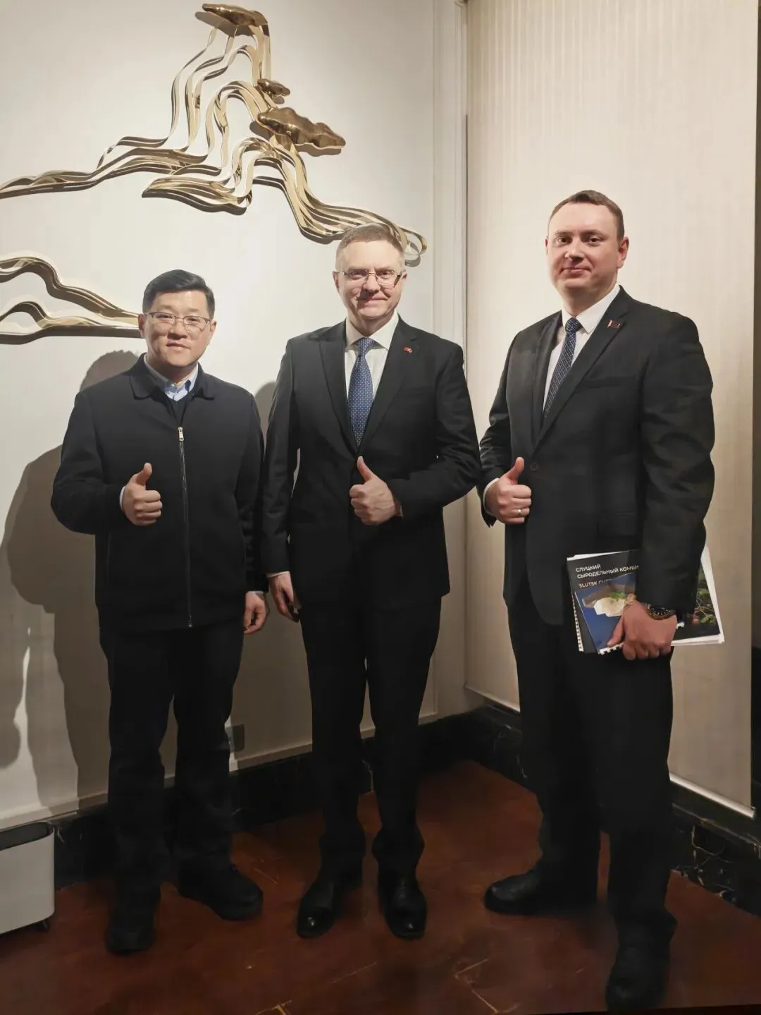 推介会期间,杜辉一行与白俄罗斯共和国驻华特命全权大使切尔维亚科夫·亚历山大、白俄罗斯农业部代表及白俄罗斯知名乳品企业负责人举行务实会谈,就黄油产品定位、渠道建设及营销策略进行沟通交流。双方在产品引入节奏、目标市场选择等方面形成初步共识,为后续业务合作打下基础。