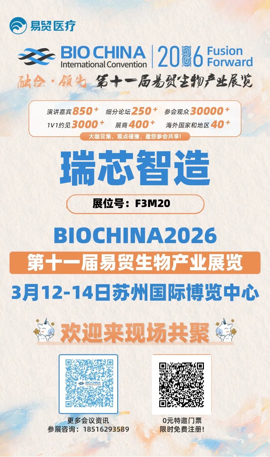 BIOCHINA2026大会将持续升级内容,以产业赛道为核心切入点,深入聚焦细分职能技术,推动全球创新药物高效开发。届时,瑞芯智造作为先进设备制造商,将携NanoCoulter™纳米库尔特单颗粒分析仪亮相大会,期待您莅临F3M20展位交流!