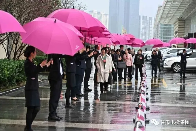 以贴心暖心的服务体现细致周到。大会服务保障期间,会展集团始终秉持用心用情细致服务的理念。在会议接待过程中,保障团队除了做好会场布设、流程对接、会务服务、应急演练等工作的基础上,考虑到参会代表多为女性,以及天气转凉的实际情况,特意准备了个性化的阿胶红糖姜茶、特色糖果盘,补充妇女代表体能需要;布设备用润肤露、发卡、发带等女性用品以备不时之需;特意用主题花盘、主题“黄河石”文创作品布置现场,既增强了会议的文化韵味,又提供了代表拍照留念的显著标识。兰州皇冠假日酒店严格按照食品安全,着重关注菜品品质,结合时令,精心调整每餐菜品,推陈出新、巧用心思,精心设计了会议主题的甜品,为与会代表尽上一份趣味心意,并提供客房住宿个性化服务;会议期间正值下雨,一把把玫红色的皇冠雨伞连成了一道温馨的爱心长廊,为代表们撑起了从会场到酒店的便捷避雨通道,一杯杯热气腾腾的姜茶提早准备就绪,贴心暖心的服务为与会代表带来了感动和惊喜。