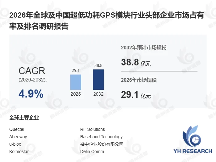 以下内容来自恒州诚思YHResearch出版的《2026年全球及中国超低功耗GPS模块行业头部企业市场占有率及排名调研报告》,同时提供英文,日文,韩文等不同语种版本报告。