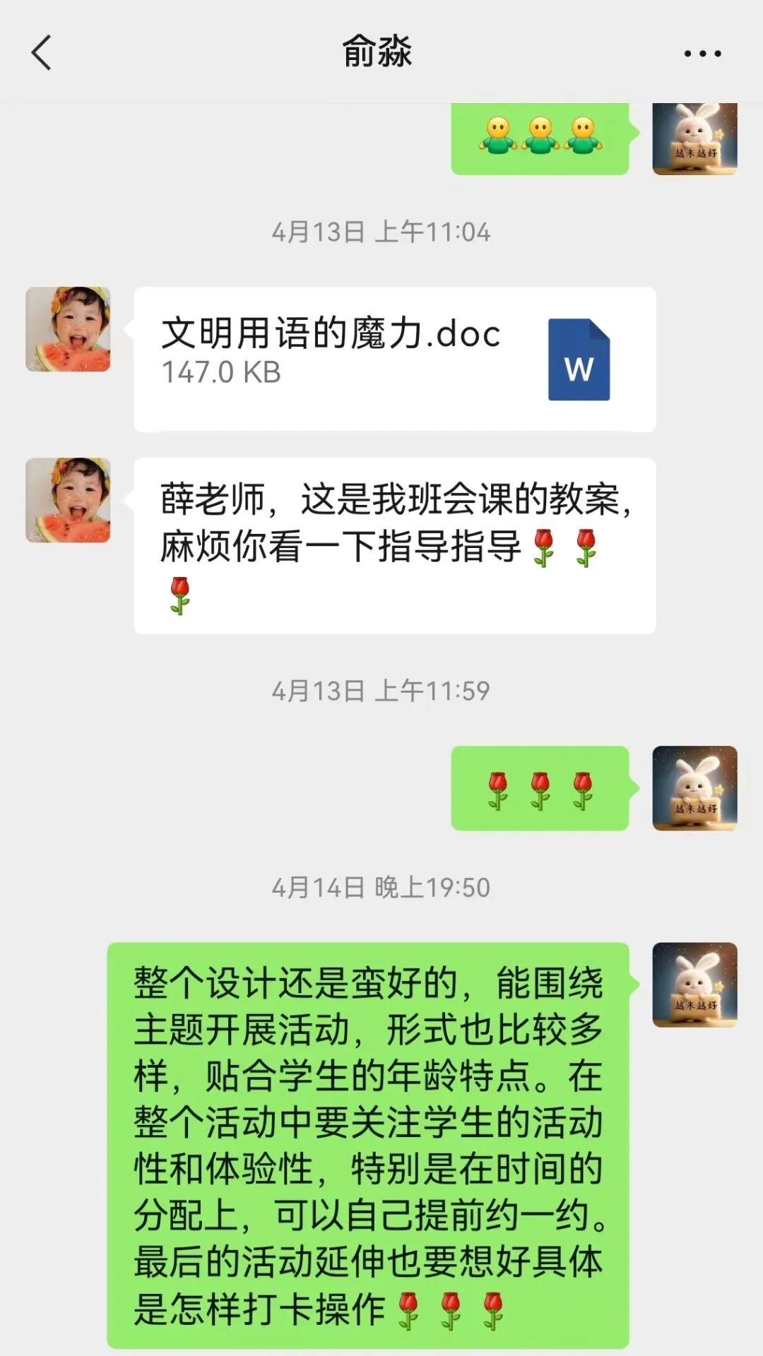 上课前,每个青年老师和自己结对的师傅共同商讨,一起交流如何选择主题,如何组织活动,如何细节处理……她们有的面对面交流,有的利用微信、QQ等媒体进行交流。