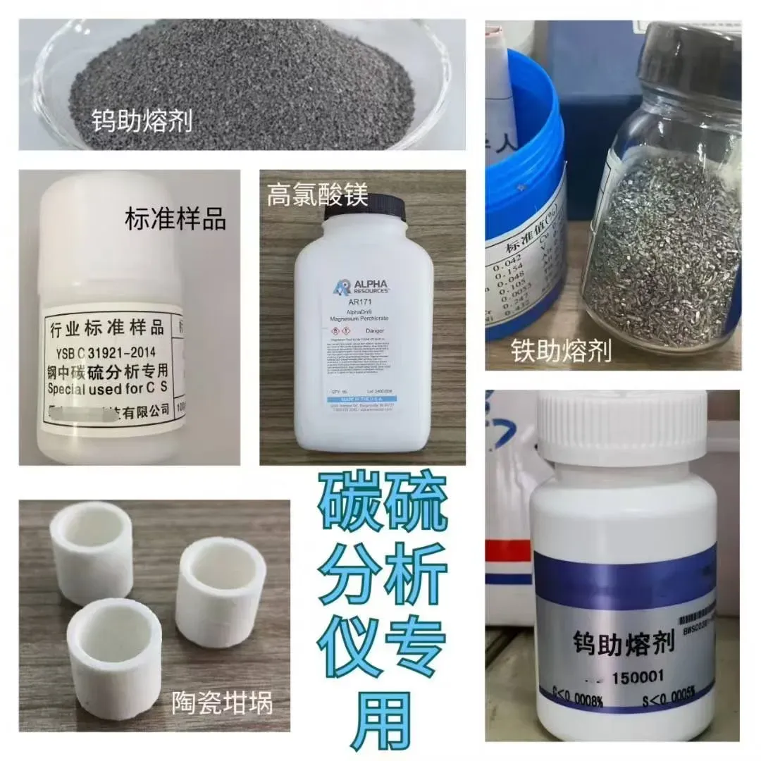 碳硫分析仪专用的实验室标样耗材:碳硫标样、陶瓷坩埚、助熔剂如纯钨、纯铁等、高氯酸镁(吸水剂)、氢氧化钠(二氧化碳吸收剂)、脱脂棉、氧化铜等。