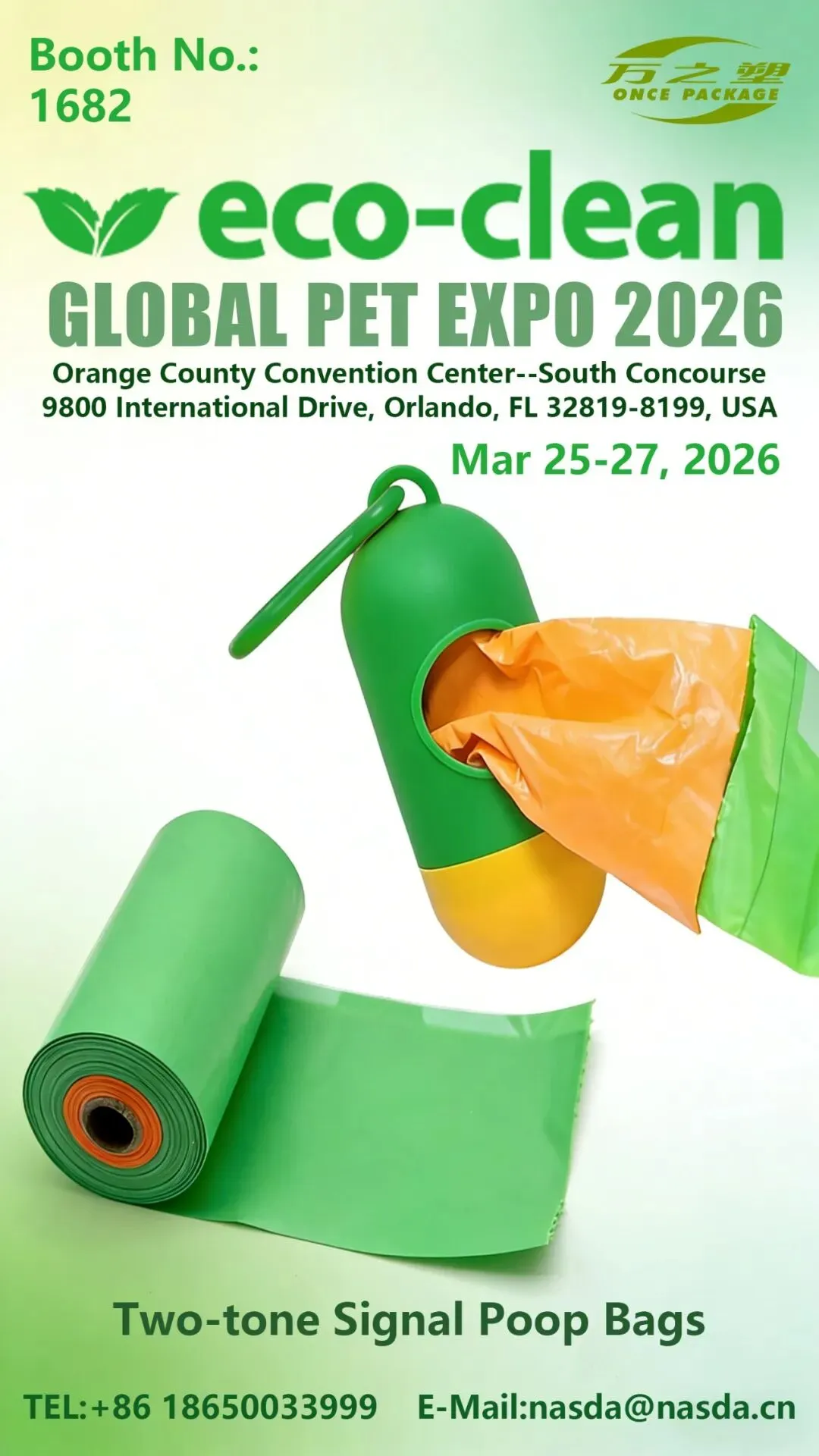 本次展会我们将重点展示 双色提示拾便袋(Two-tone Signal Poop Bags)。这款产品采用醒目的双色设计,便于识别袋子的剩余情况,提醒宠物主人及时换袋;同时选用环保可降解材质,兼顾实用与可持续性。无论是日常遛狗还是户外旅行,它都能为宠物主人带来更便捷、安心的清洁体验。
