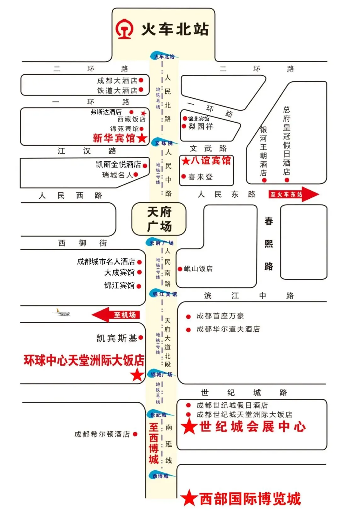 4.从天府机场出发:乘坐18号线直达西博城或世纪城。