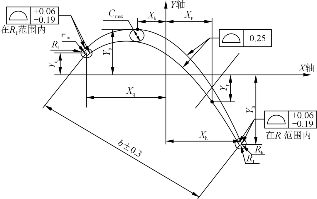 精度指标方面,叶冠内流道面轮廓度≤0.15mm,缘板内流道面轮廓度≤0.2mm,叶身型面最大轮廓度为 0.125mm,整体尺寸精度要求极高。