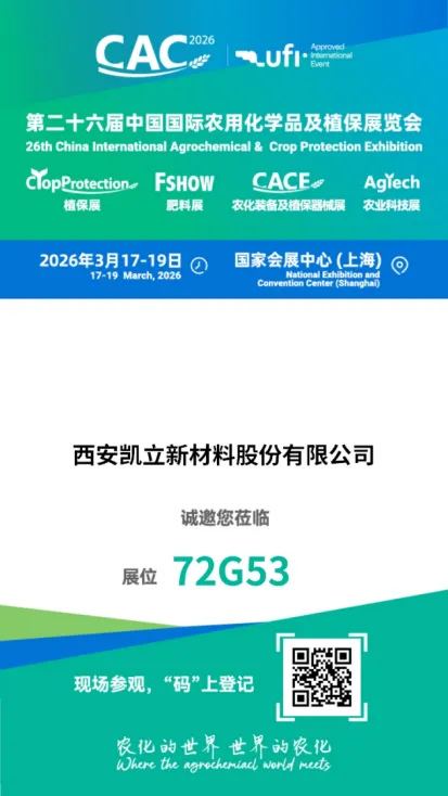 中国国际农用化学品及植保展览会(CAC展)由中国国际贸易促进委员会化工行业分会主办,2026 CAC展出规模再创新高,展品范围广,涵盖农药、肥料、植保与农用生物工程技术、农用机械等,达160,000平方米,预计展会期间将汇聚130多个国家和地区的100,000余人次的农化行业人士,届时将有海内外2300余参展企业参展。展会搭建起全球农化产品供需双方的贸易平台,提供信息交流契机,共话农化行业新发展。