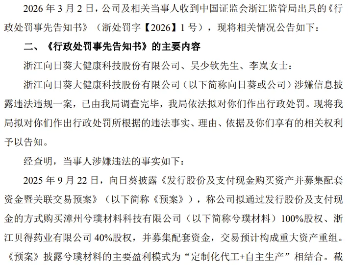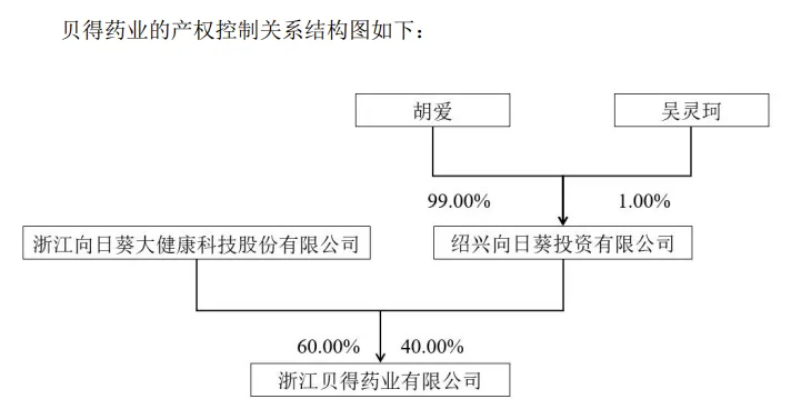 浙江贝得药业有限公司为向日葵持股60%的控股子公司,成立于2004 年 11 月 10 日。向日葵拟收购绍兴向日葵投资有限公司持有的贝得药业有限公司40%的股权。