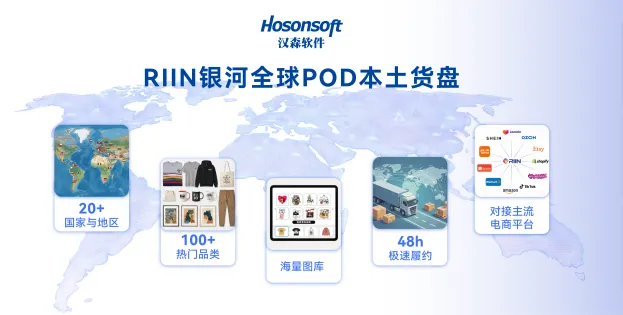 RIIN银河全球POD服务平台,覆盖选品、设计、刊登、全球本土一件代发全流程,让卖家轻资产出海,告别内卷焦虑: