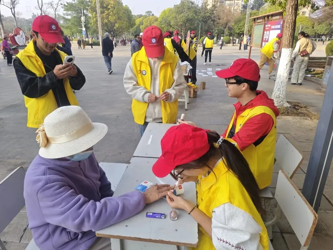 上午8时20分,活动正式拉开帷幕。本次志愿服务活动以“志愿彩云南 青春展风采”为主题,内容设计新颖独特,将专业技能、传统文化与便民服务有机融合。在反诈宣传摊位前,志愿者们结合当下高发的诈骗案例,耐心向过往市民讲解防骗知识,守护群众的“钱袋子”;美甲服务点前人头攒动,学生们运用专业技能为社区女性居民提供贴心服务,传递青春温度 。