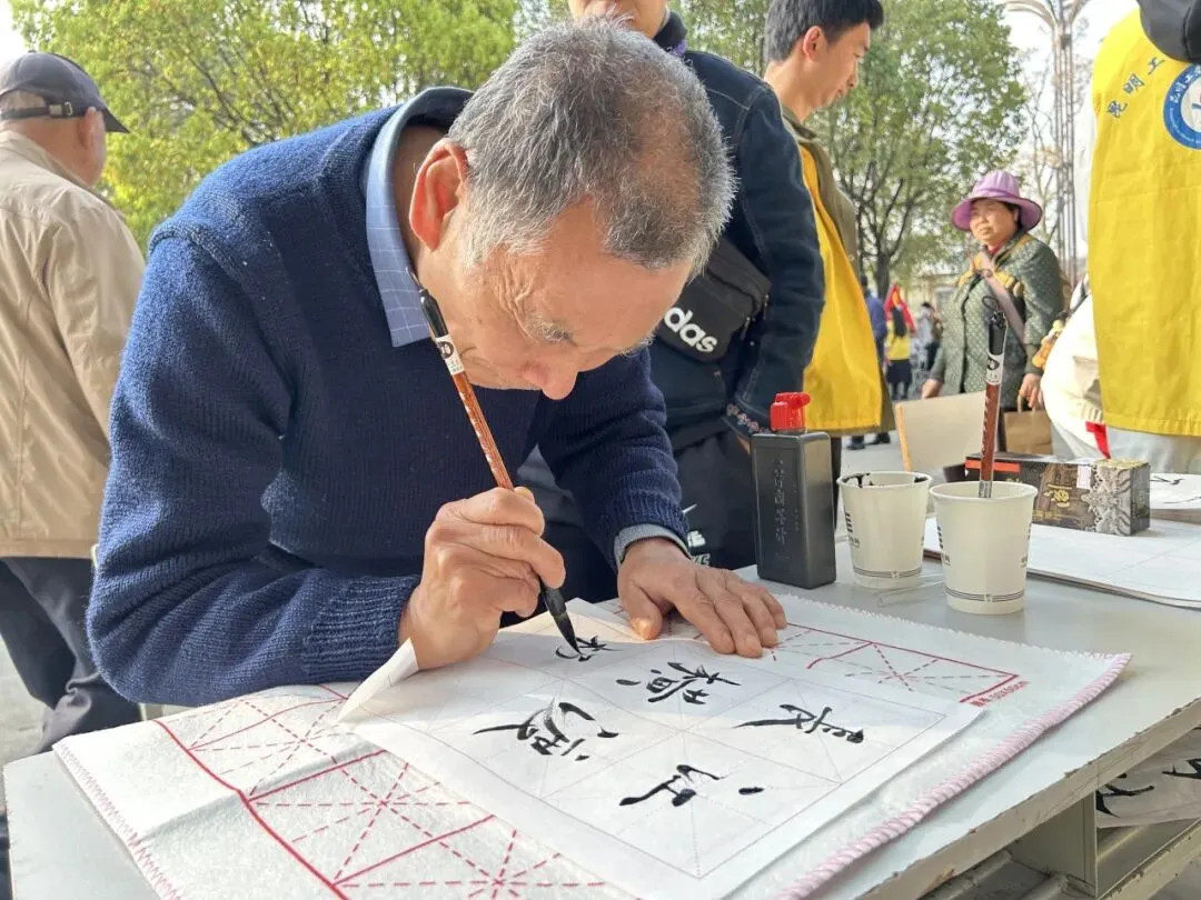 最具文化韵味的当属书法与手工艺互动区。志愿者们现场挥毫泼墨,创作毛笔书法作品并精心书写书签,将励志格言与传统美德凝于笔端,赠予市民留念;象棋、五子棋对弈区吸引了不少社区棋友驻足切磋,老少同乐,气氛融洽。此外,扎风筝和编中国结的体验活动更是备受欢迎,志愿者们手把手教授技艺,在经纬交织与竹篾扎制中,让市民近距离感受中华优秀传统文化的魅力 。