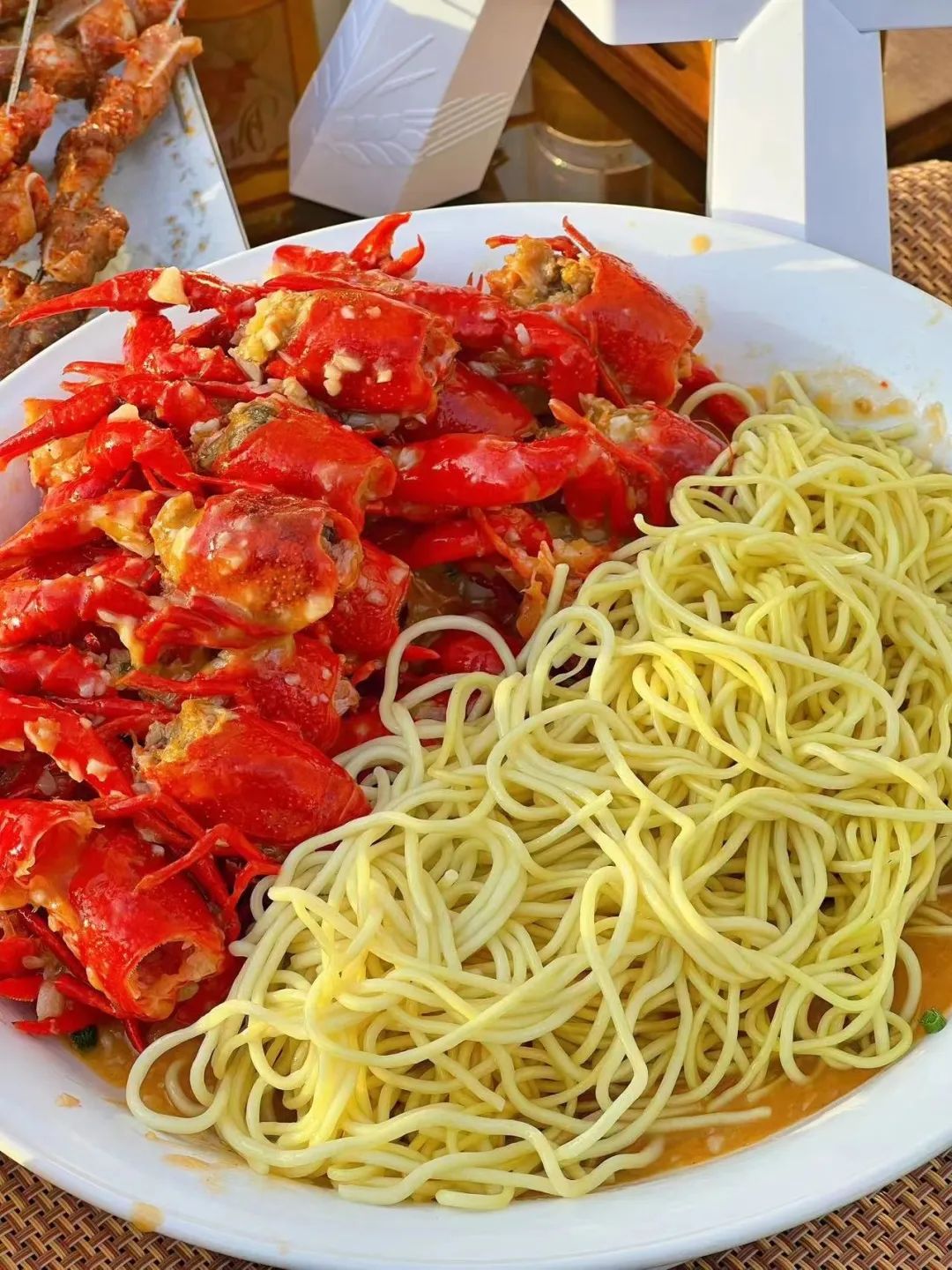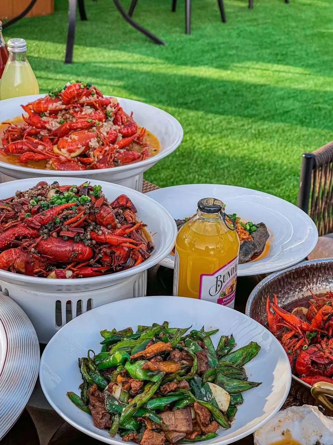 悦享露天餐厅的特色菜品是小龙虾和烧烤。小龙虾鲜活够味,肉质Q弹,配上大跃啤酒,是夏天最佳的搭配。
