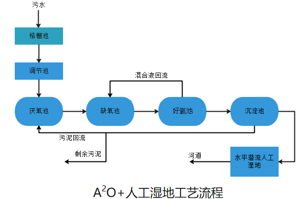 工艺特点:生物膜对污水水质、水量的变化有较强的适应性,生物相更为丰富、稳定,产生的剩余污泥少,出水水质优良且稳定,使用年限长,人工湿地中植物吸附作用,确保出水水质达标直接排放。