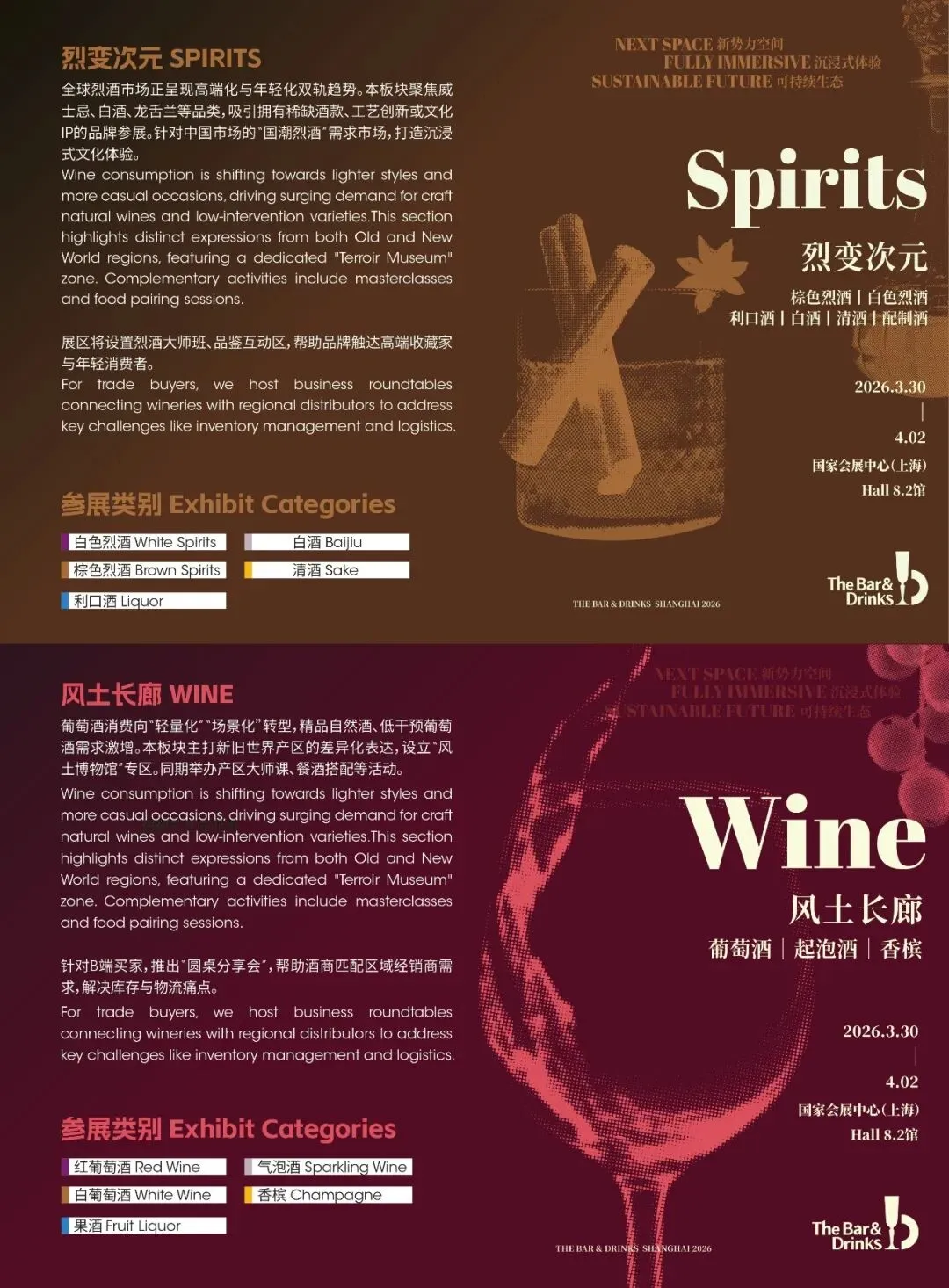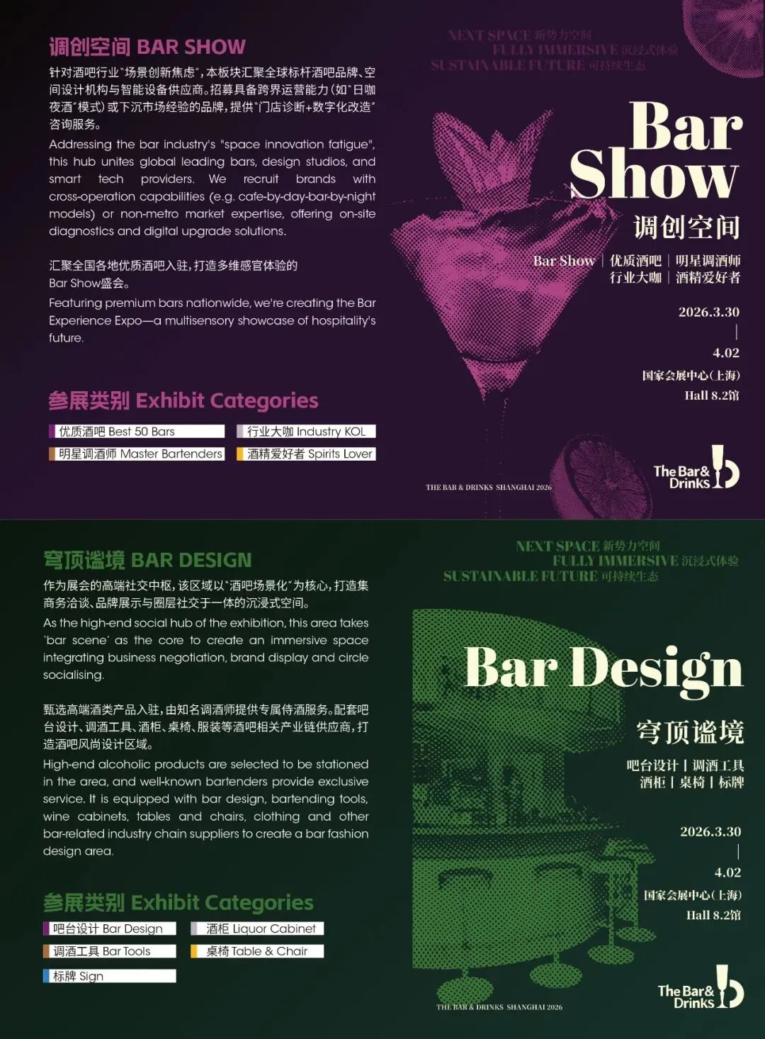 这一次The Bar & Drinks 展会将于 2026 年 3 月 30 日 – 4 月 2 日,在 国家会展中心(上海)8.2 馆 举办。