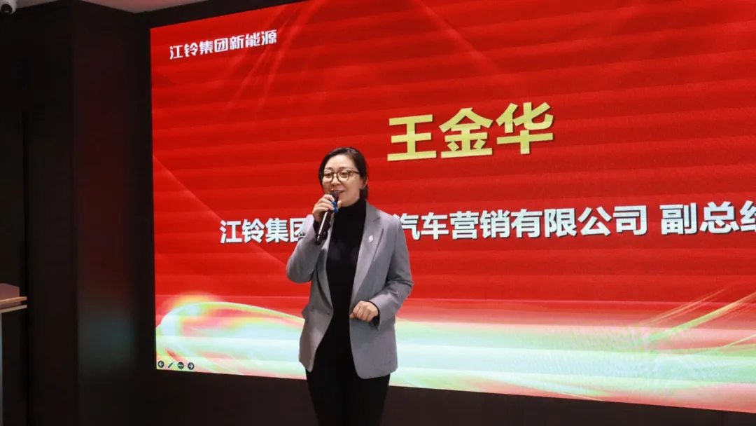 江铃集团新能源营销副总经理王金华出席并致欢迎词,向到场嘉宾与合作伙伴致以诚挚欢迎。她表示,本次推介会重磅推出三大核心内容:带来最新出行产品解决方案、联合金融机构推出专属金融方案、搭建交流合作平台促成战略签约,以十足诚意回应市场需求,与合作伙伴携手成长。