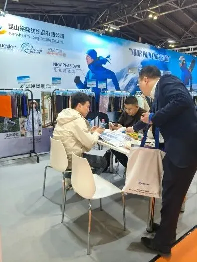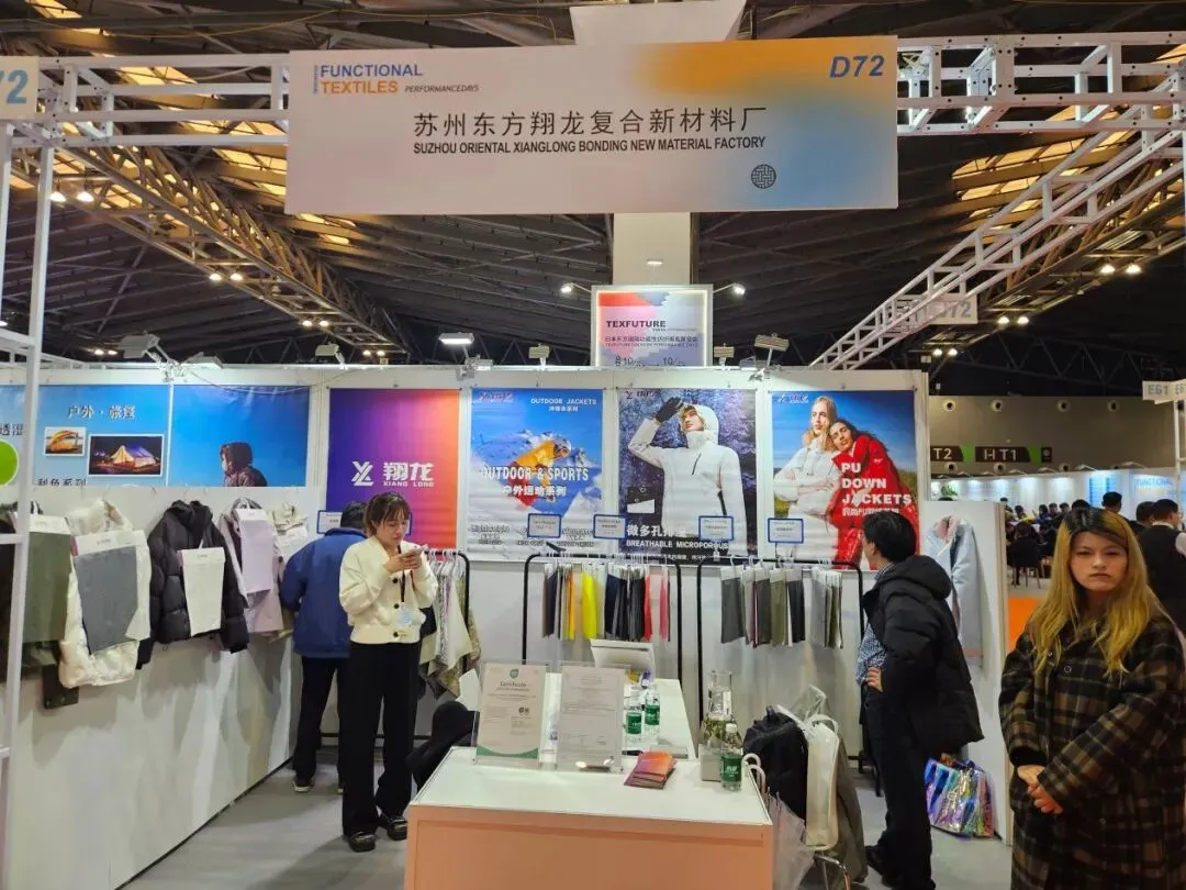 此次商户代表苏州东方翔龙复合新材料厂亮相D72展位,集中展示冲锋衣、小湿法涂层、羽绒服等核心功能产品,最新研发技术,充分展现了在户外功能纺织品领域的实力。